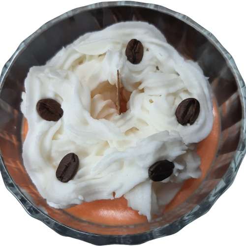 Lumanare parfumata Cupcake din palmier cu fitil lemn, Aromelaborcanel, Lolly Coffee – Cafea, Acadea si Capsuni, handmade, multicolor, ceara naturala, 200g