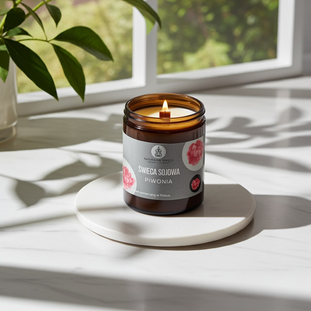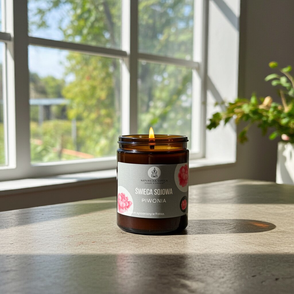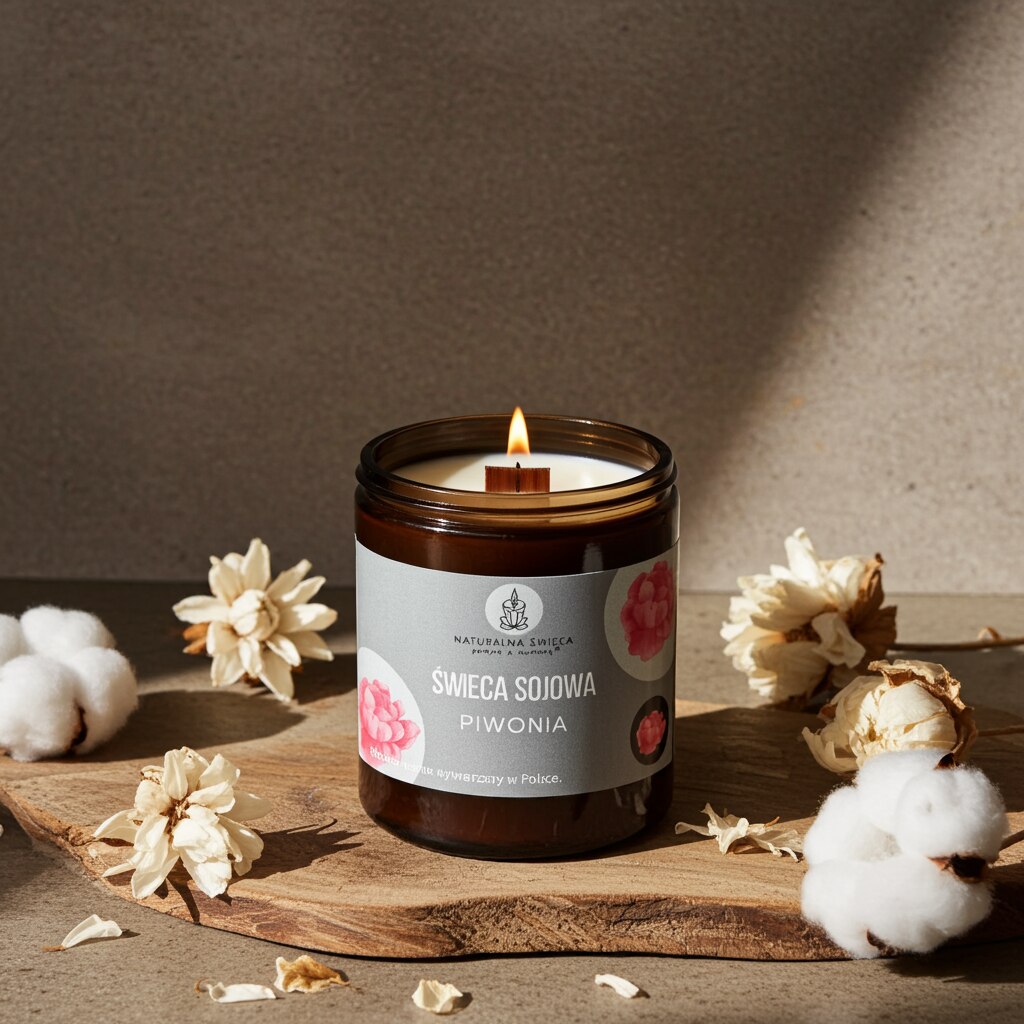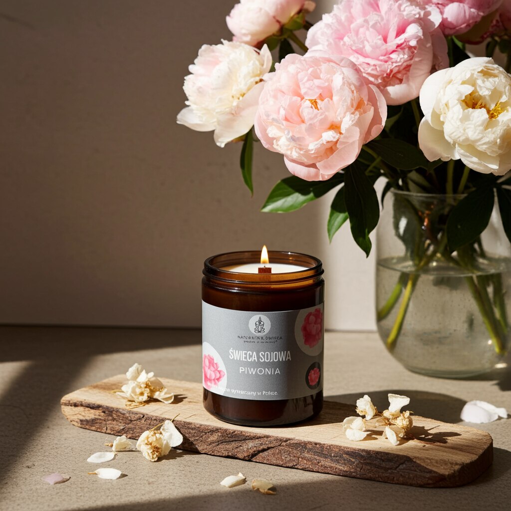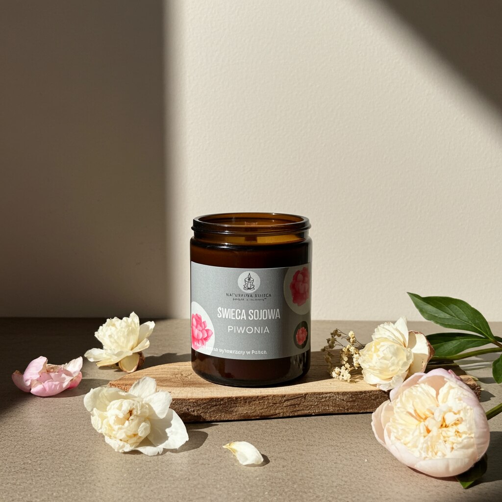 Lumanare parfumata, Naturalna Świeca prosto z natury, Fitil din lemn, Aroma bujor, 180ml
