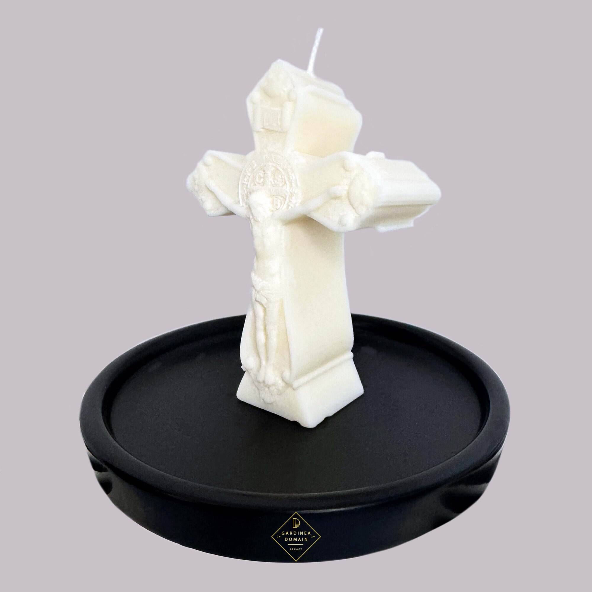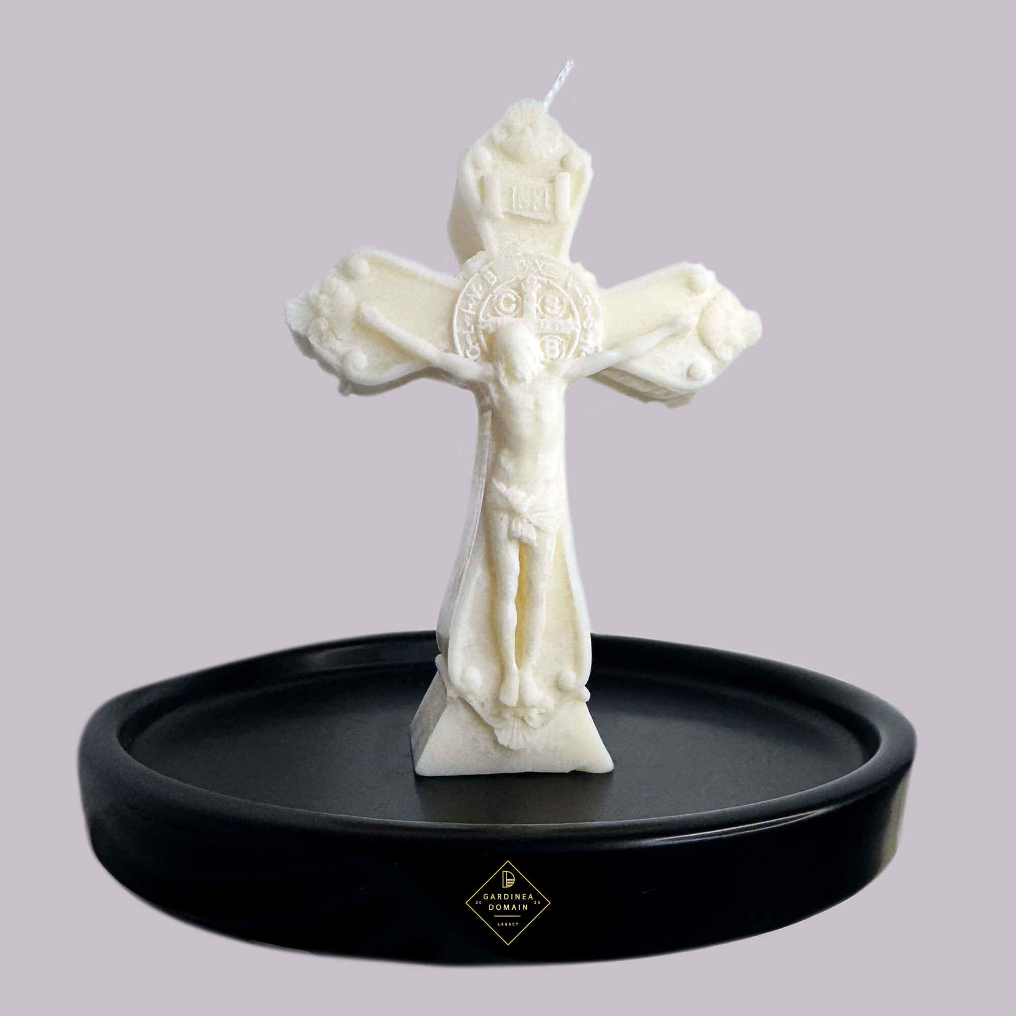 Lumanare tip icoana Iisus pe cruce Gardinea Domain®, ceara de soia 100% naturala, vegana, Alb inaltime 10 CM