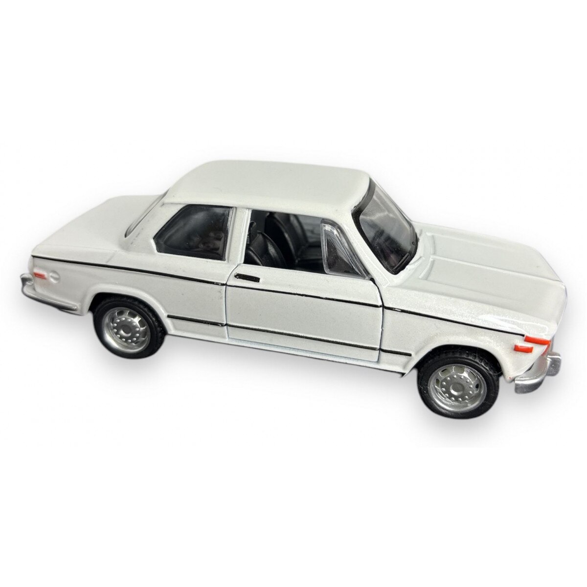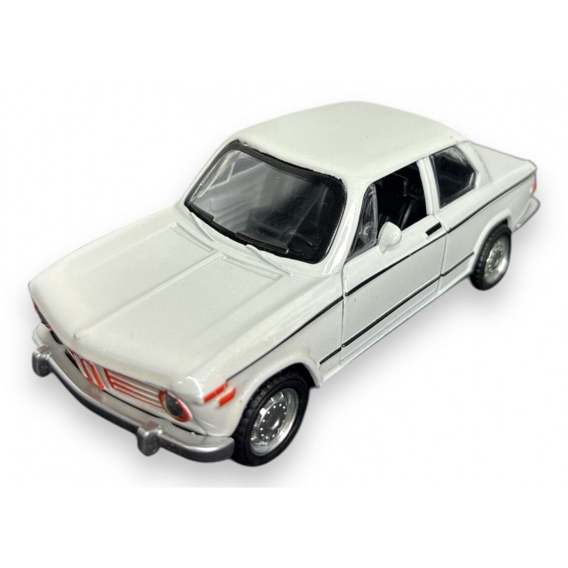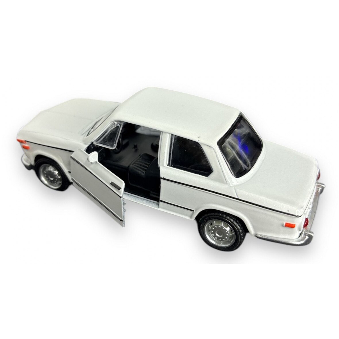 Macheta BMW 2002, din Metal, cu Lumini si Sunete realistice de Motor si Alarma, cu Functie Pull-Back, cu Functie de Deschidere a Usilor - Alb