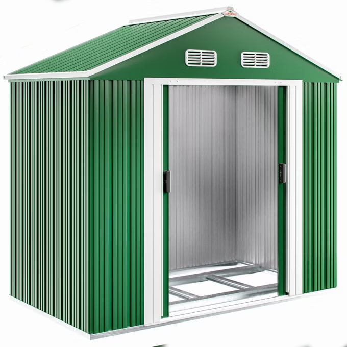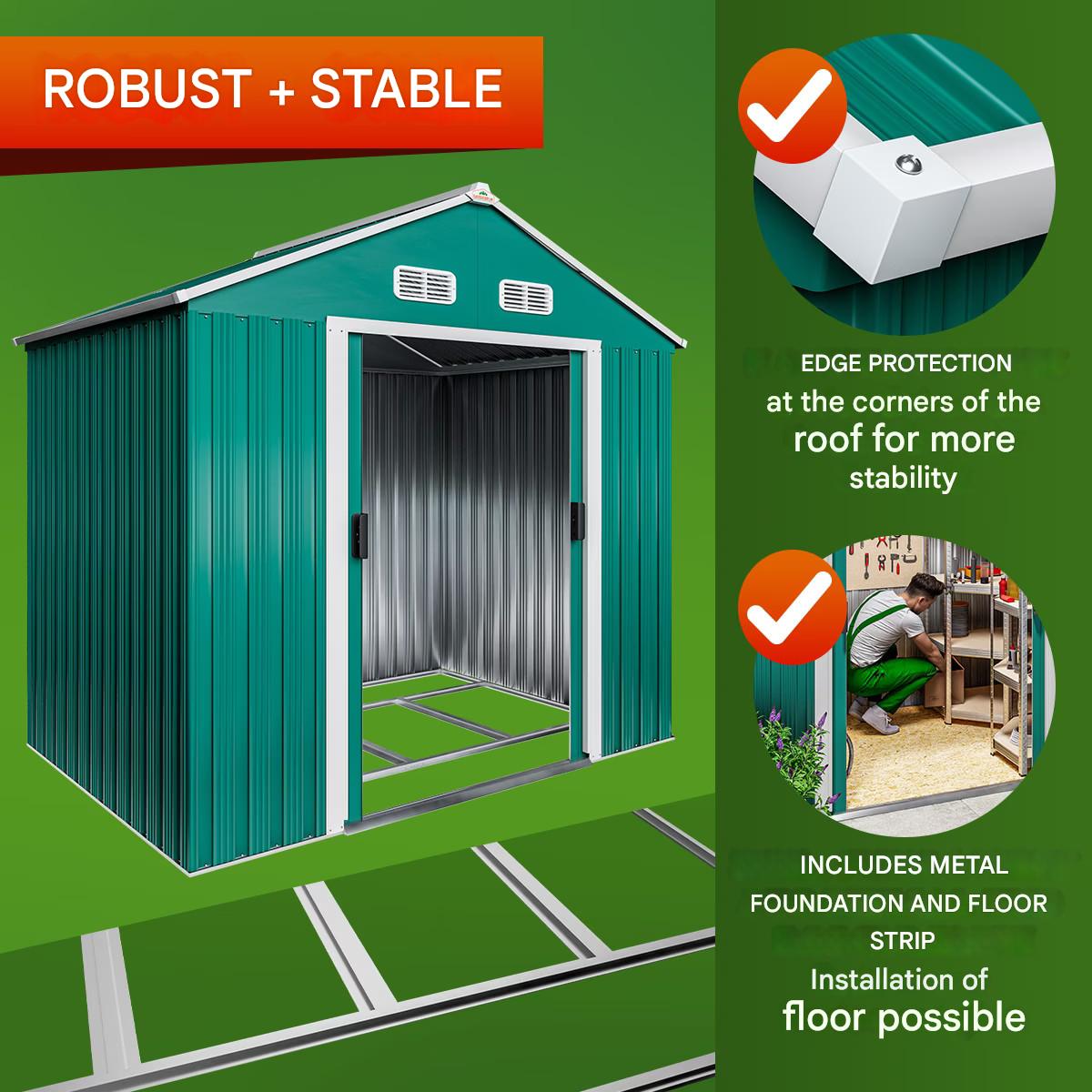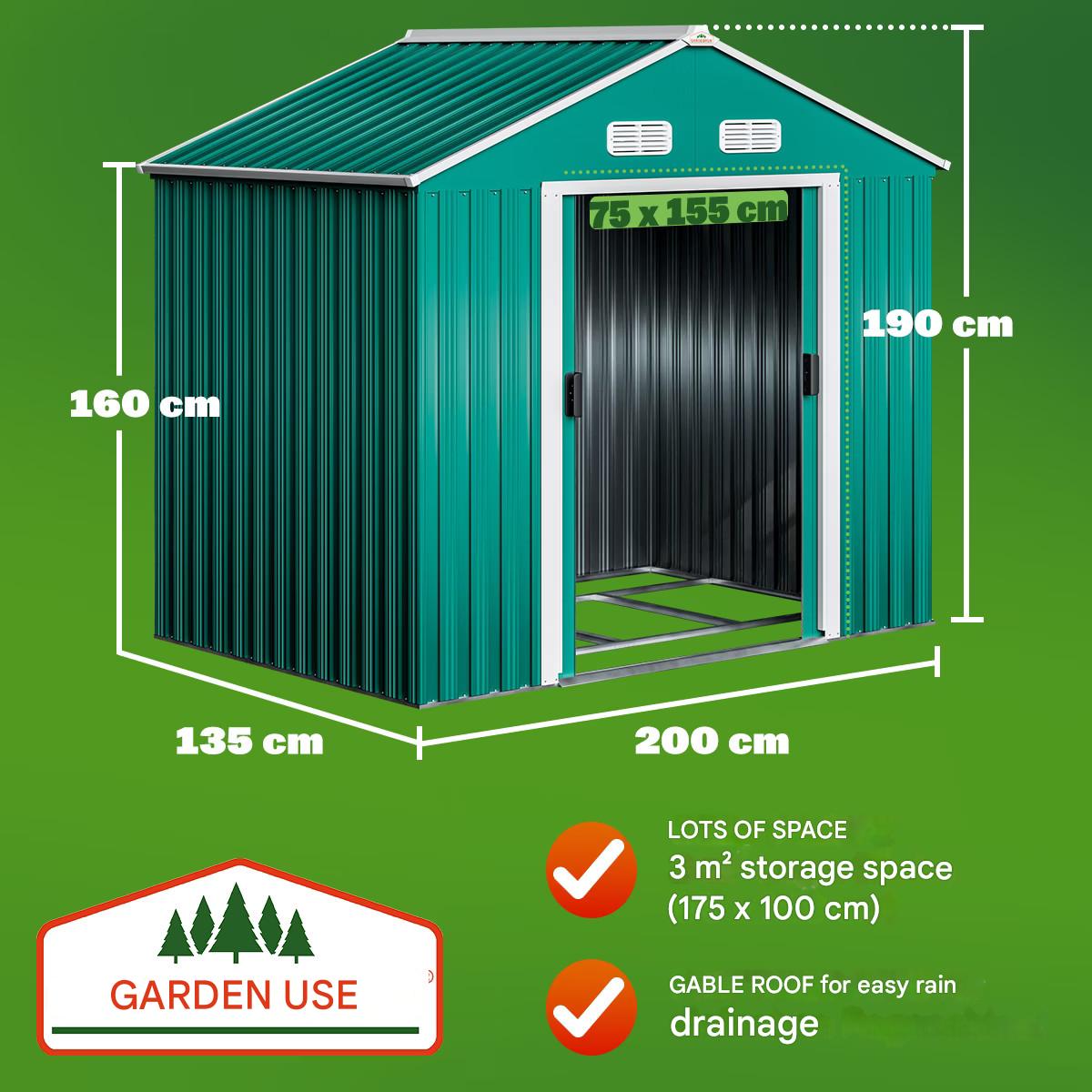 Magazie metalica de gradina/exterior, pentru scule, Gardebruk, 200x135x190cm, usi duble, Verde