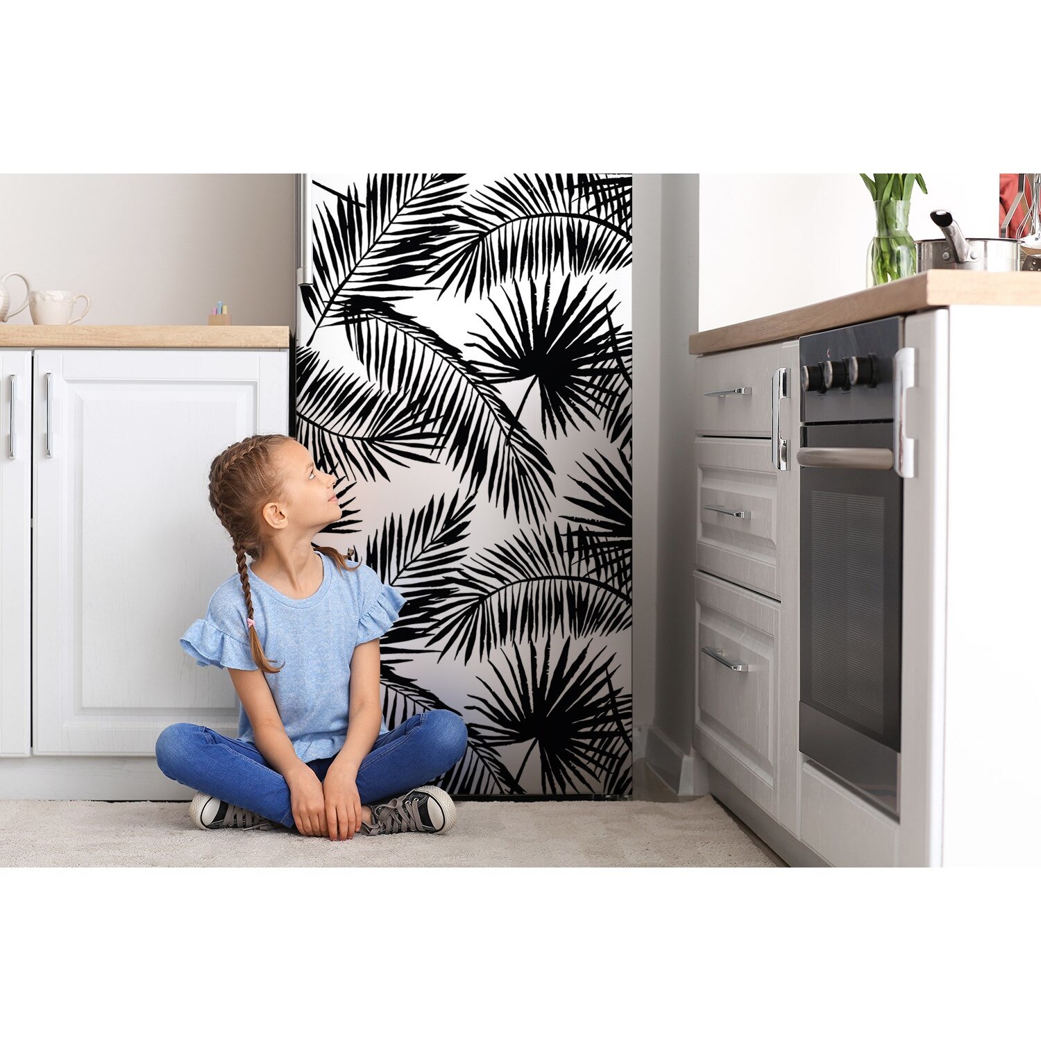Magnet de frigider, XXL, Frunze exotice, Albastru, 70 cm x 190 cm