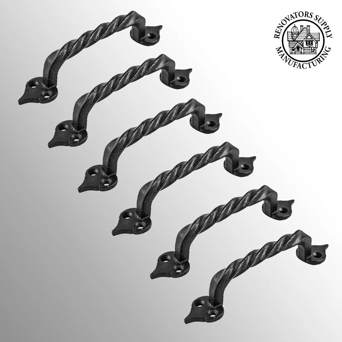 Maner de tragere a usii din fier forjat rasucit negru 5 7/8" L Trage decorative pentru comoda, rezistente la rugina Manere de tragere pentru usi de sertar de dulap cu feronerie Pachet de 6,,Pachet de 6