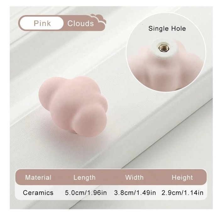 Maner tip buton din ceramica pentru dulap sau sertar, dimensiuni 2.9 x 3.8 x 5 cm model Nor, culoarea roz, The Casius.®