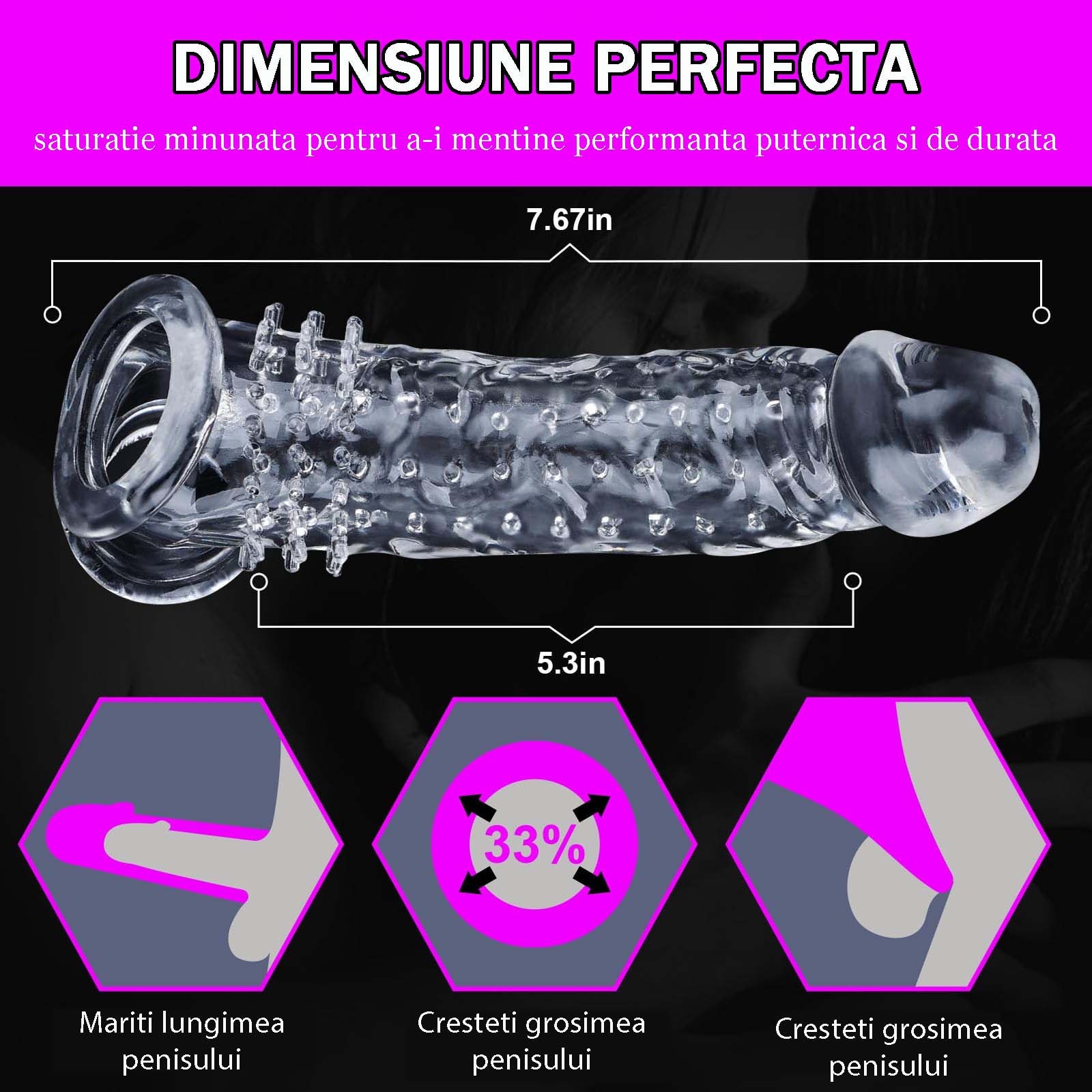 Manson de prelungire penis, Dildo ultrarealist, design realist, Cresterea eficienta a lungimii, senzatia de particule concave, experienta perfecta, 25x3.5cm, OUYLAF, Transparen2