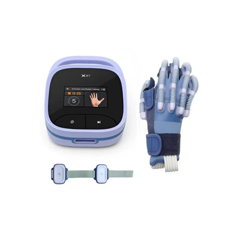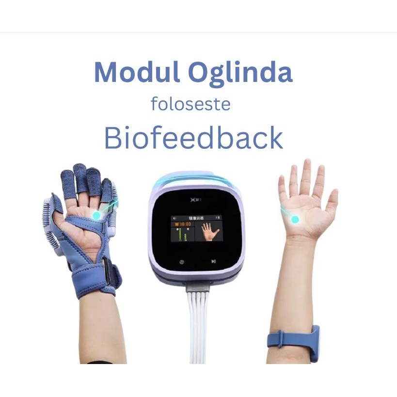 Descriere Avitalx BIOFEEDBACK - Manusa robotica pentru reabilitarea mainii Manusa de reabilitare Avitalx BIOFEEDBACK este un dispozitiv care utilizeaza muschi artificiali bionici pneumatici pentru a actiona articulatiile degetelor si pentru a ameliora simptome precum spasmul degetelor, accidentul vascular cerebral si paralizia. In timp ce ajuta in mod eficient la reabilitarea diferitelor functii ale mainii, manusa actioneaza, de asemenea, asupra refacerii conexiunilor nervoase, promovand imbunatatirea reabilitarii, ajutand utilizatorii sa recupereze si sa reinvete treptat functiile motorii ale mainii. Foloseste tehnologia EMG - Monitorizarea Electromiografica Electromiografia (EMG) este o procedura de diagnosticare pentru a evalua starea de sanatate a muschilor si a celulelor nervoase care ii controleaza (neuronii motori). Rezultatele EMG pot dezvalui disfunctii nervoase, disfunctii musculare sau probleme de transmitere a semnalului de la nerv la muschi. In Modul Oglinda - Intensitatea semnalului EMG al membrului pacientului poate fi detectata in timp real prin intermediul bratarii EMG. Atunci cand semnalul EMG atinge un prag prestabilit, manusa robot de reabilitare este declansata pentru a ajuta la antrenarea functiei de flexie si extensie a membrului afectat, astfel incat membrul pacientului sa poata realiza flexia mainii si miscarile de extensie a mainii in mod dependent, sa antreneze si sa repare functia motorie a membrului pacientului si sa previna atrofierea muschilor. Pe baza principiului oglinzii, adopta tehnologia de biofeedback EMG pentru a face ca membrul sanatos sa conduca membrul afectat si sa sincronizeze miscarea ambelor membre. Sub stimularea imaginii in oglinda a membrului sanatos, se activeaza sistemul neuronilor oglinda, iar prin imitatie si invatare continua, neuroplasticitatea creierului este indusa pentru a reconstrui functia neuromotorie. Neuroplasticitatea, cunoscuta si sub numele de plasticitate neuronala sau plasticitate cerebrala, este capacitatea retelelor neuronale din creier de a se schimba prin crestere si reorganizare. Este atunci cand creierul este reconectat pentru a functiona intr-un mod diferit de modul in care a functionat anterior. Conceput pentru a simula structura mainii umane, muschiul bionic pneumatic flexibil este folosit ca sursa de energie pentru a ajuta pacientii sa faca antrenamente de reabilitare activa si pasiva prin programe de antrenament prestabilite. Actuatorul pneumatic incorporat asigura un control extrem de fiabil al degetului pneumatic prin iesirea stabila a presiunii aerului reglabile de inalta precizie, actionand in mod eficient articulatiile degetelor pentru antrenamentul bionic, asigurand in acelasi timp ca nu sunt provocate leziuni secundare, cum ar fi intinderile. Ajuta la: - imbunatatirea circulatiei sangvine; - reducerea spacititatii musculare; - relaxarea muschilor contractati; - imbunatatirea abilitatilor motrice prin miscarea recurenta a degetelor cu ajutorul furtunelor pneumatice. Manusa are 6 moduri de utilizare.