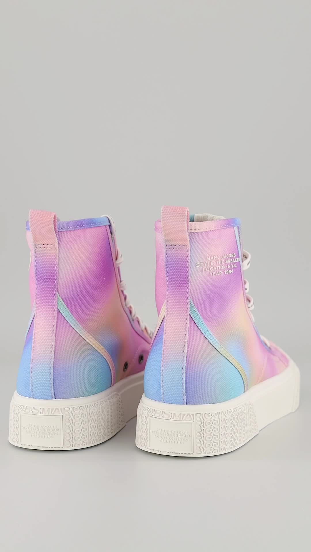 Marc Jacobs, Tenisi mid-high cu logo pe talpa, Albastru pastel/Roz pastel/Lila