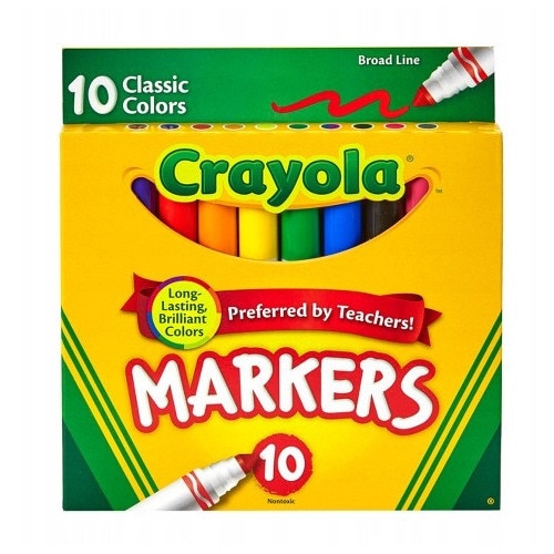 Markere lavabile, Crayola, linie groase, Set De 10 Bucati, Multicolor, Pentru Copii, Pentru Proiecte Artistice, groase, Netoxice, Ideale Pentru gradinite