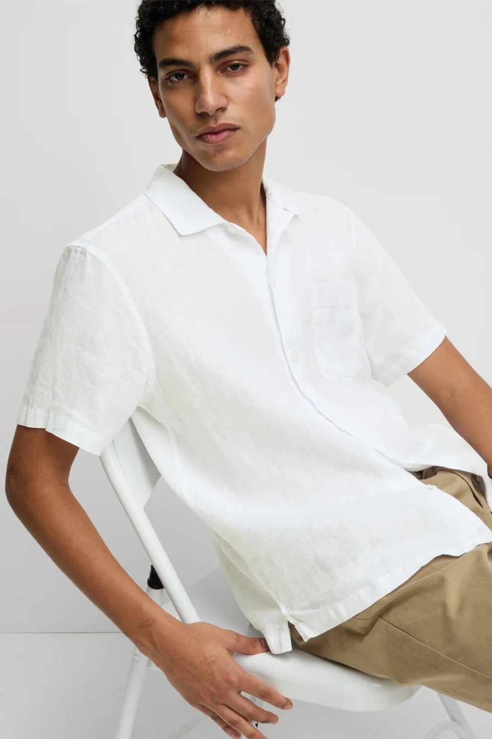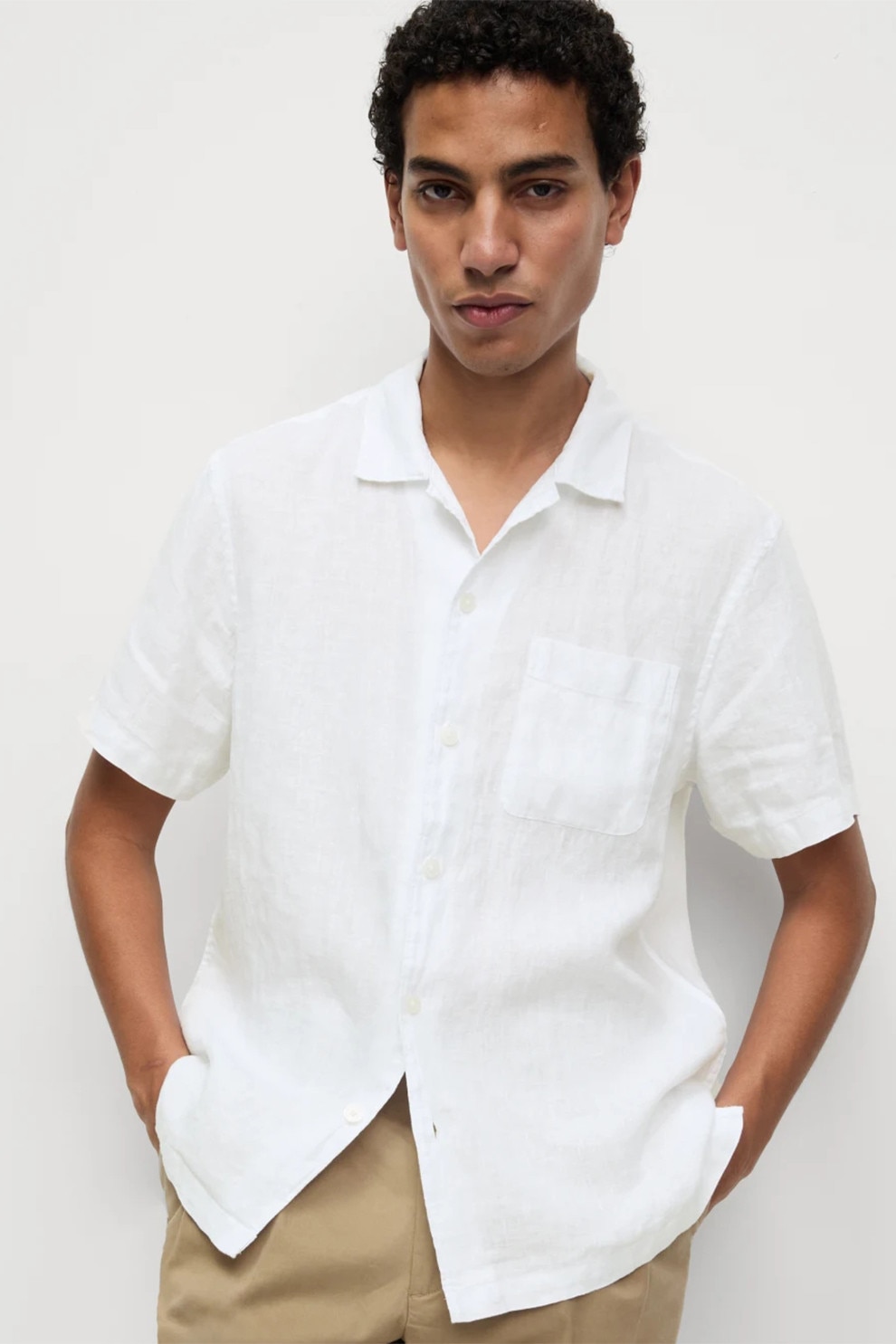 Marks & Spencer - Camasa de in cu maneci scurte, Alb