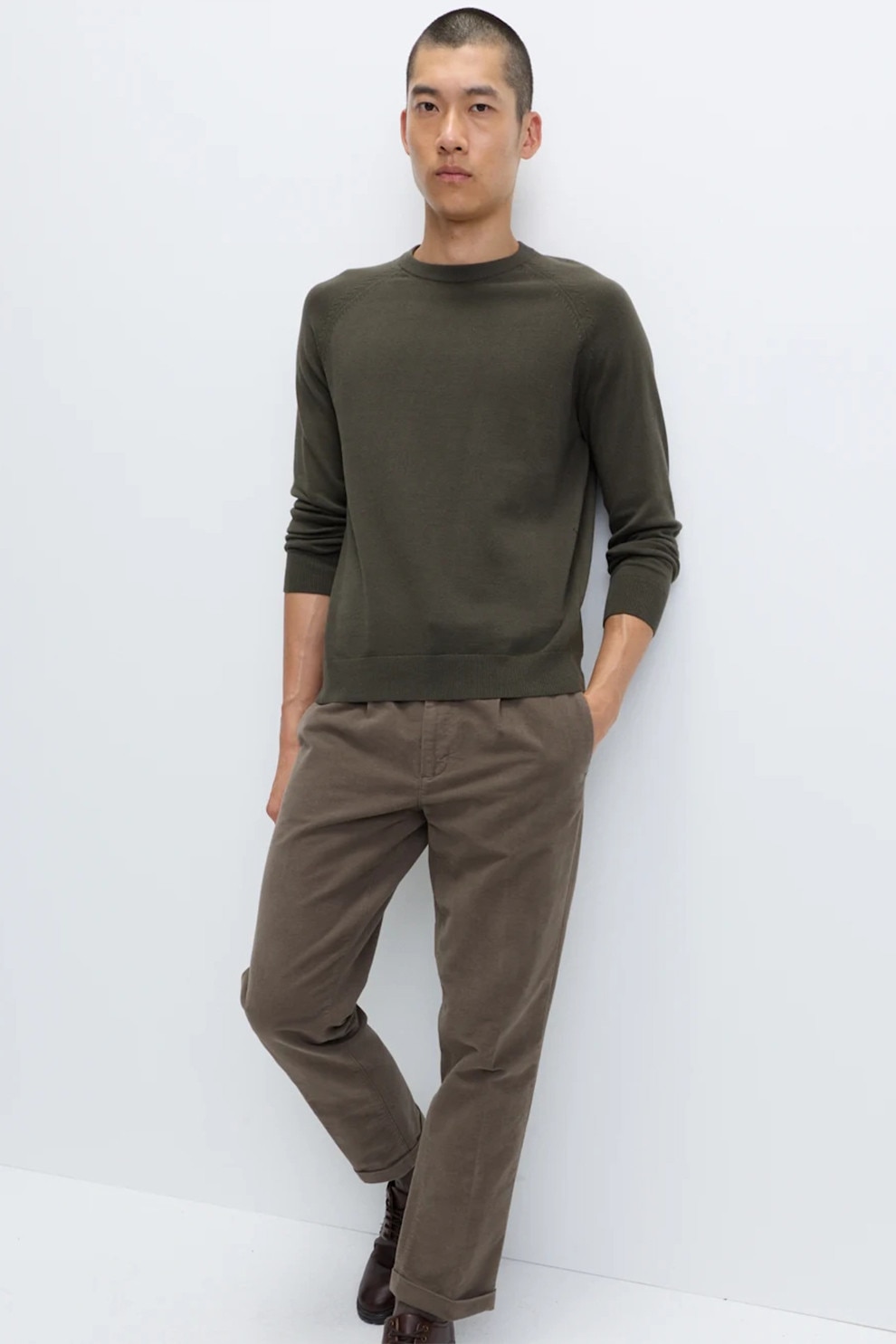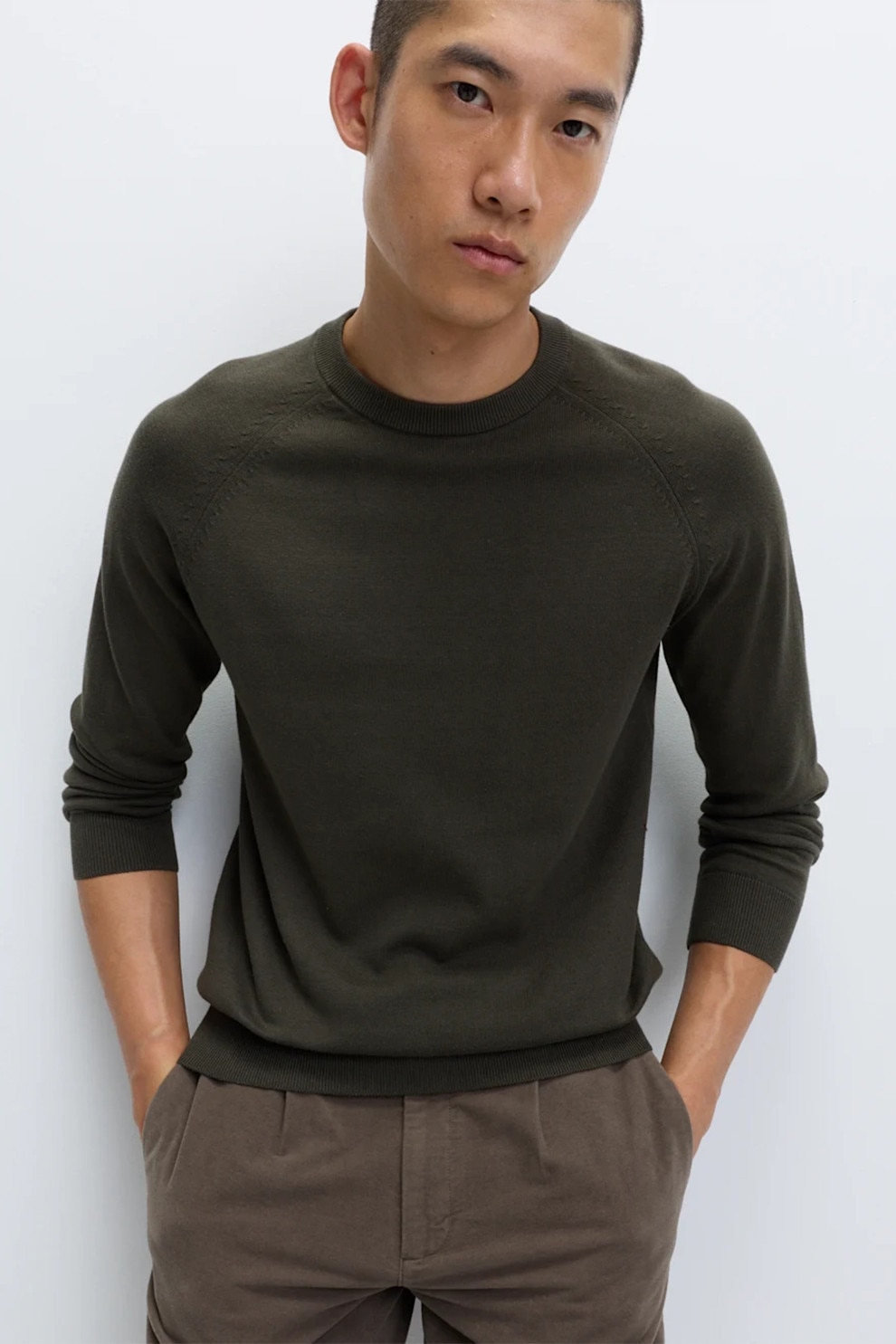 Marks & Spencer, Pulover din bumbac cu maneci raglan, Kaki