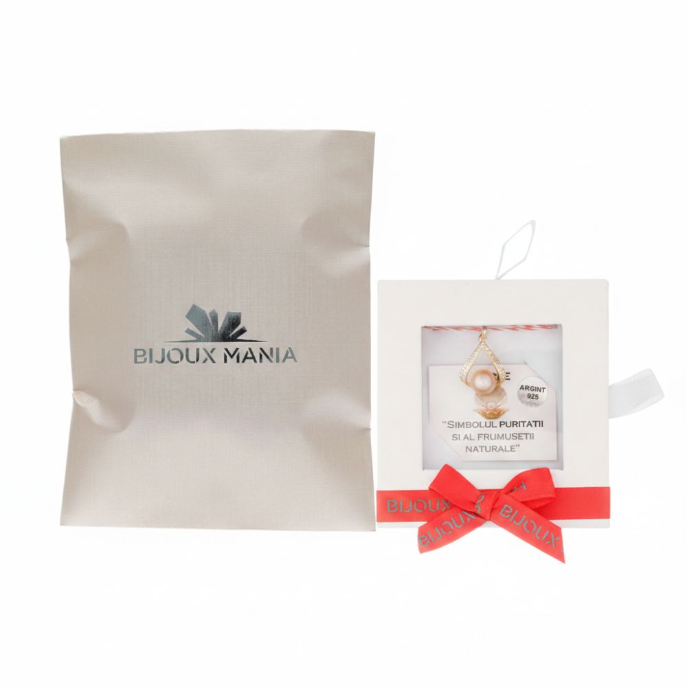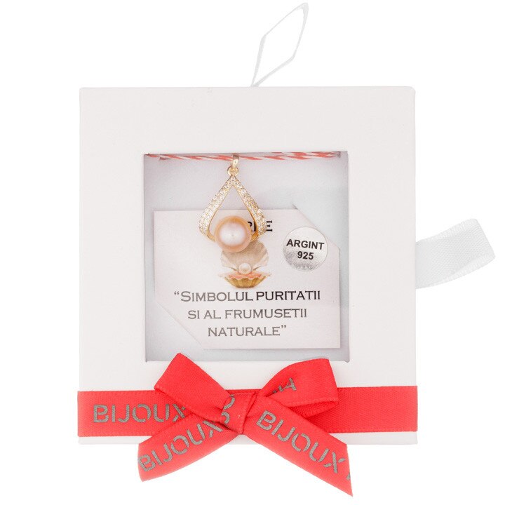 Martisor Argint Pandantiv Zirconiu Si Perla De Cultura Piersica 8 Mm BijouxMania