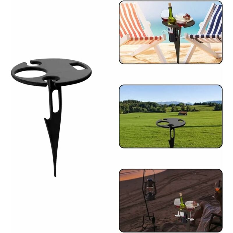 Masa pliabila pentru picnic cu suport portabil pentru vin, Enforose, lemn de inalta calitate, design compact, negru