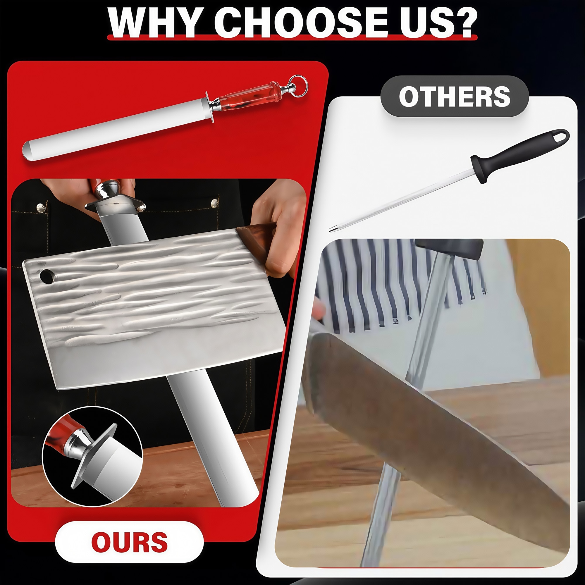1. Care este duritatea acestui otel de ascutit? Otelul de ascutit Otelul de ascutit BestPlaza are o duritate Rockwell de 65+ HRC, care este de trei ori mai dur decat otelurile standard, asigurand o durabilitate excelenta si ascutire eficienta pentru diferite tipuri de cutite.