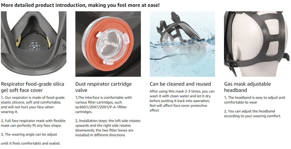 Masca de gaze, Masca de protective respiratorie, filtru carbon active, etansare faciala complete, reutilizabila, WALALLA, gri