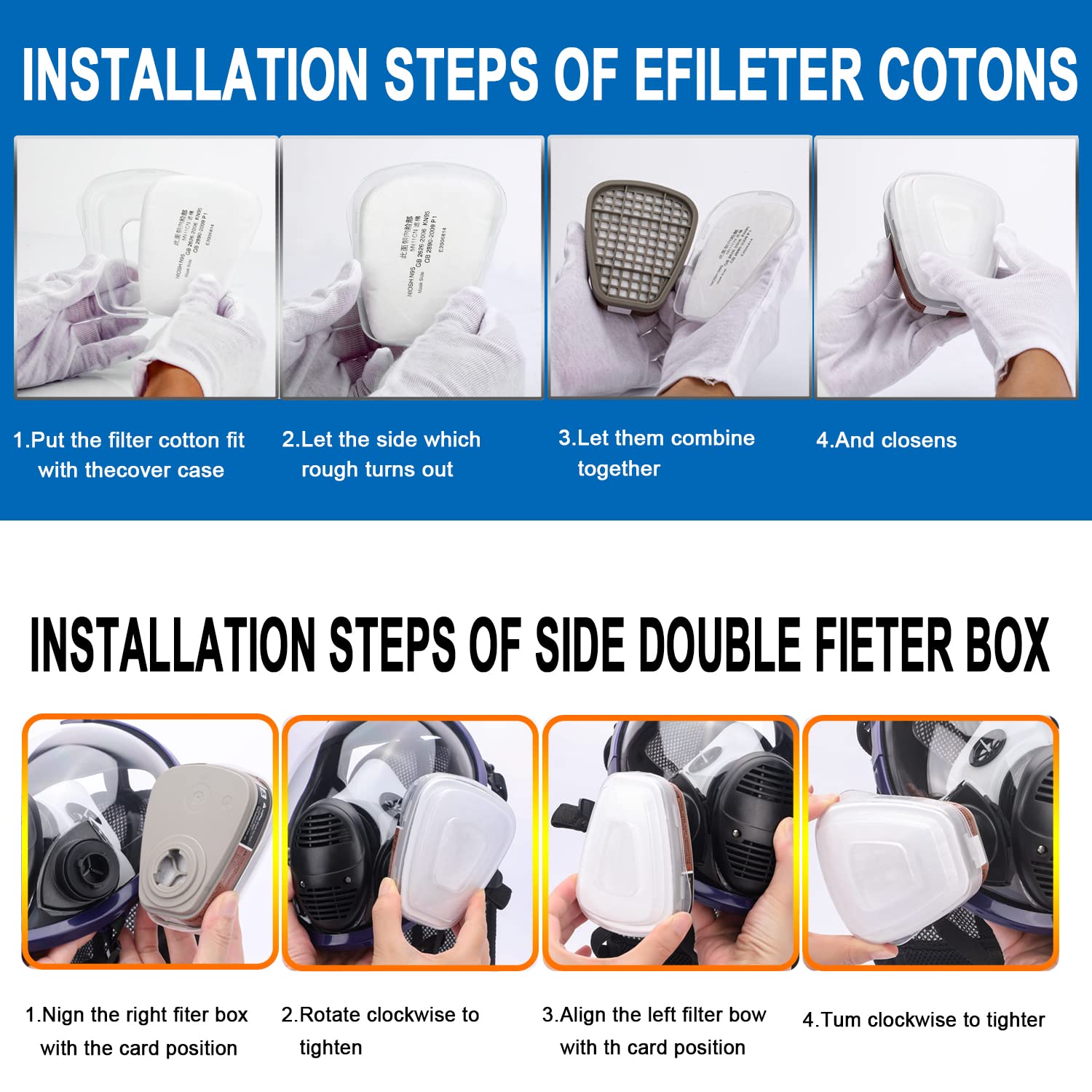 Masca de protectie completa 17 in 1, WALALLA, reutilizabila, cu filtru dublu, curea ajustabila, pentru vopsire, praf, sudura, negru, universal