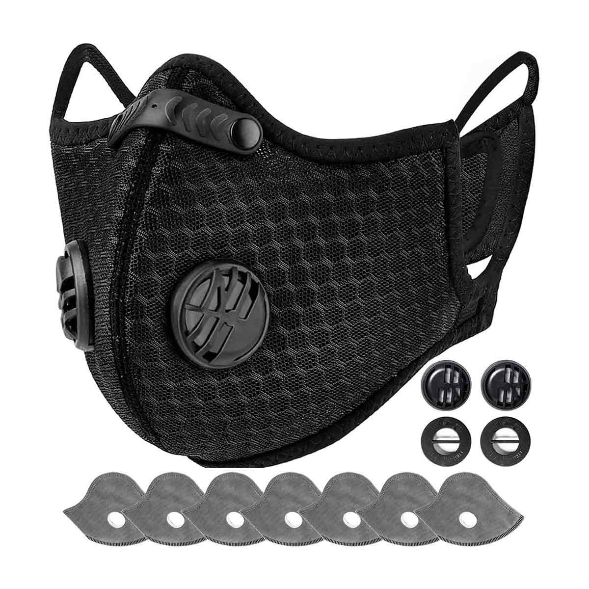 Masca de protectie reutilizabila cu 6 filtre si 2 valve de respiratie, set pentru activitati in aer liber