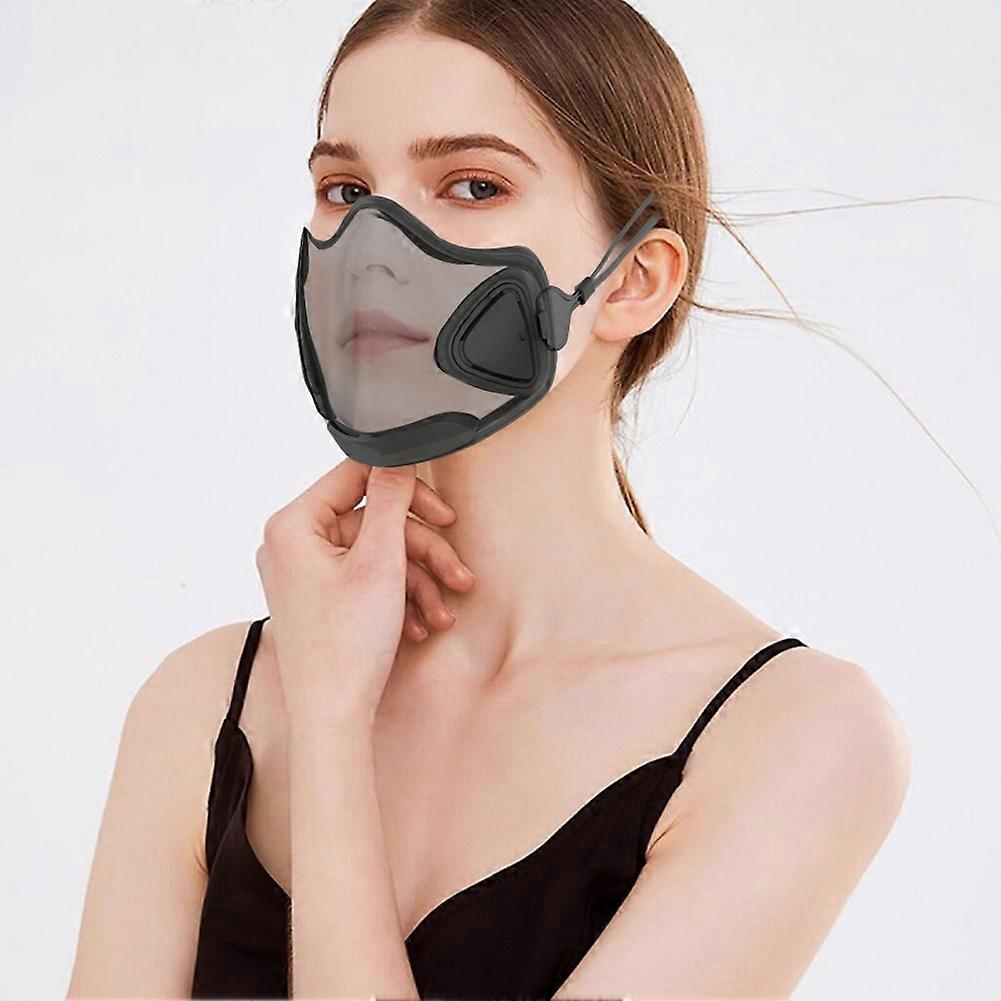 Masca faciala transparenta reutilizabila, anti-ceata, neagra, cu garnitura din cauciuc siliconic, curele ajustabile