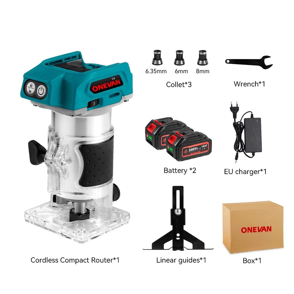 Masina de frezat, 1600W, 5 viteze, adancime reglabila, baterie 22900mAh, set 2 baterii, priza EU