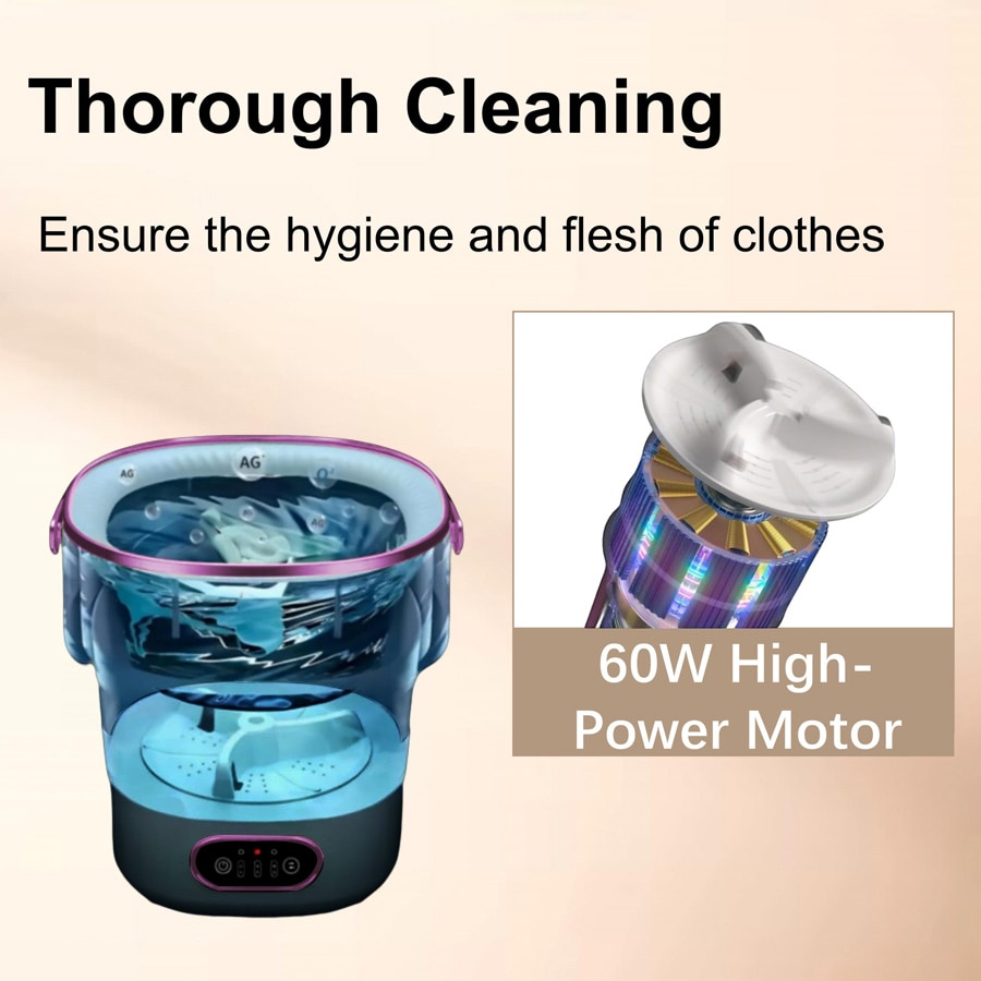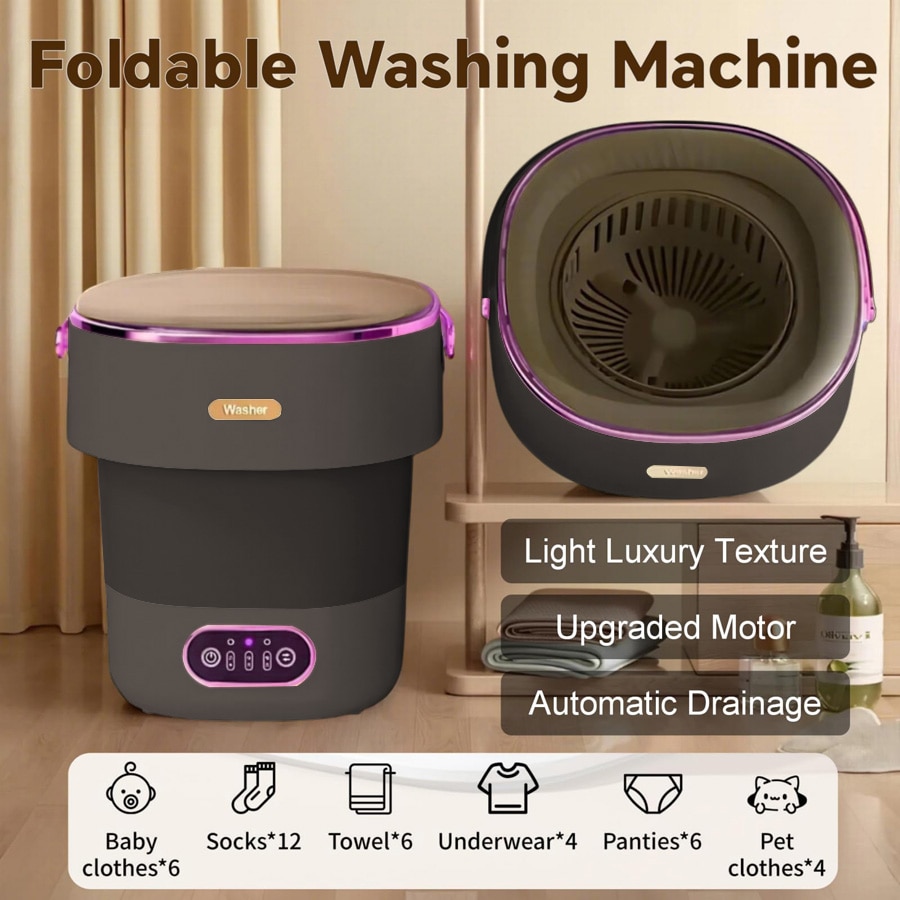 Masina de spalat rufe pliabila 13L, WALALLA, functie de deshidratare, 3 programe de spalare, Violet, 30x30x32cm