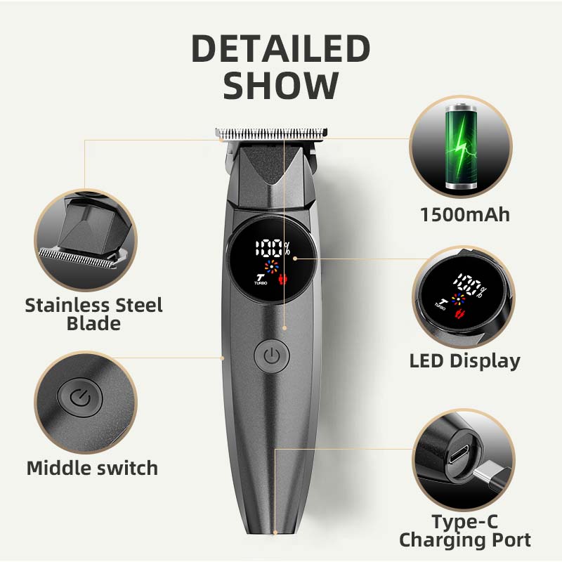 | Functii | Rezistent la apa Afisaj digital Maner anti-alunecare Indicator baterie Utilizabil ud si uscat Incarcare rapida Touch control Cap de taiere detasabil |