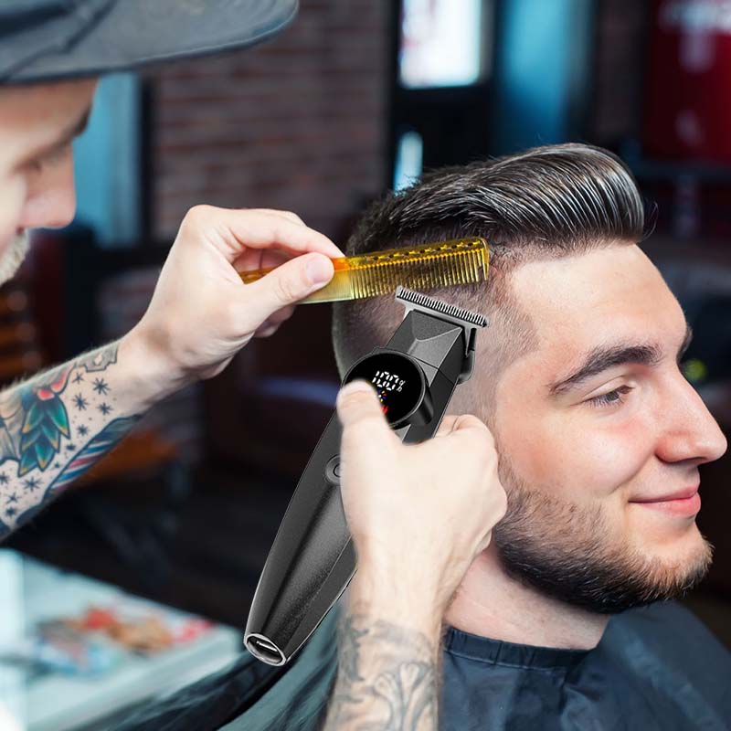 Masina de tuns pentru barbati LimeFofen Model 9023, pentru tuns si barbierit, design fara fir, motor 7200 RPM, incarcare rapida, neagra, afisaj digital al puterii, comutator central