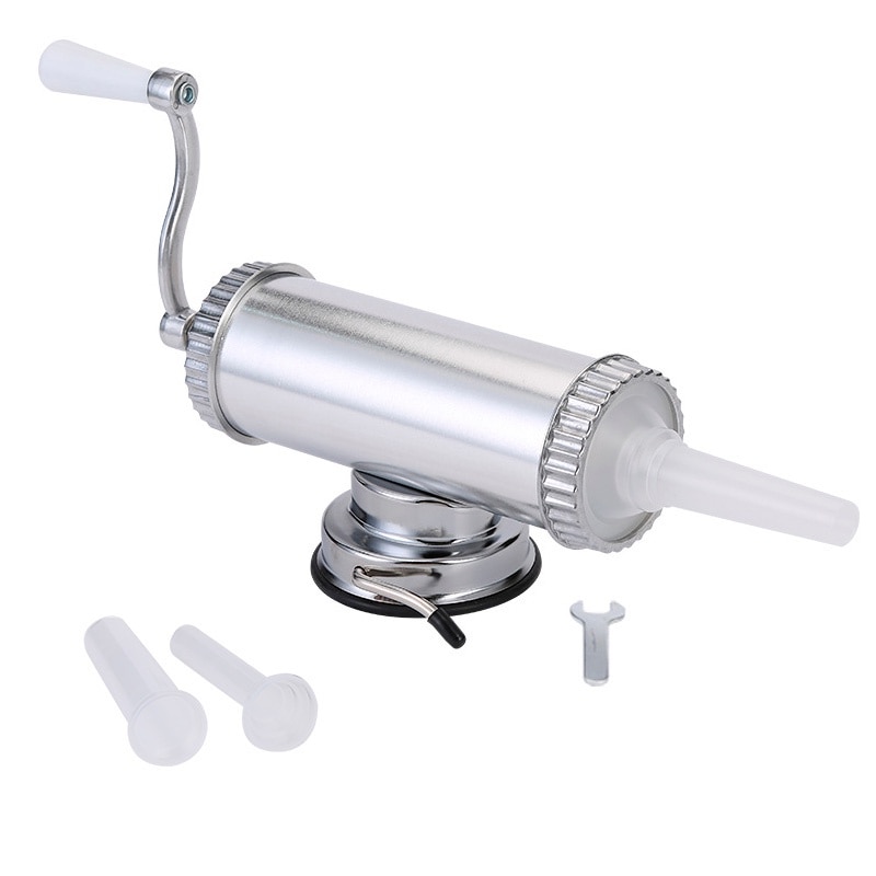 【 Accesorii multiple: 】 Echipat cu 3 tuburi de umplere pentru carnati cu diametru diferit, 22mm, 19mm si 15mm , va permite sa faceti cu usurinta diversi carnati si carnati proaspeti acasa. [Material:] Aceasta masina pentru carnati este realizata din piston din silicon, ceea ce asigura ca nu exista aer in interiorul carcasei pentru carnati.