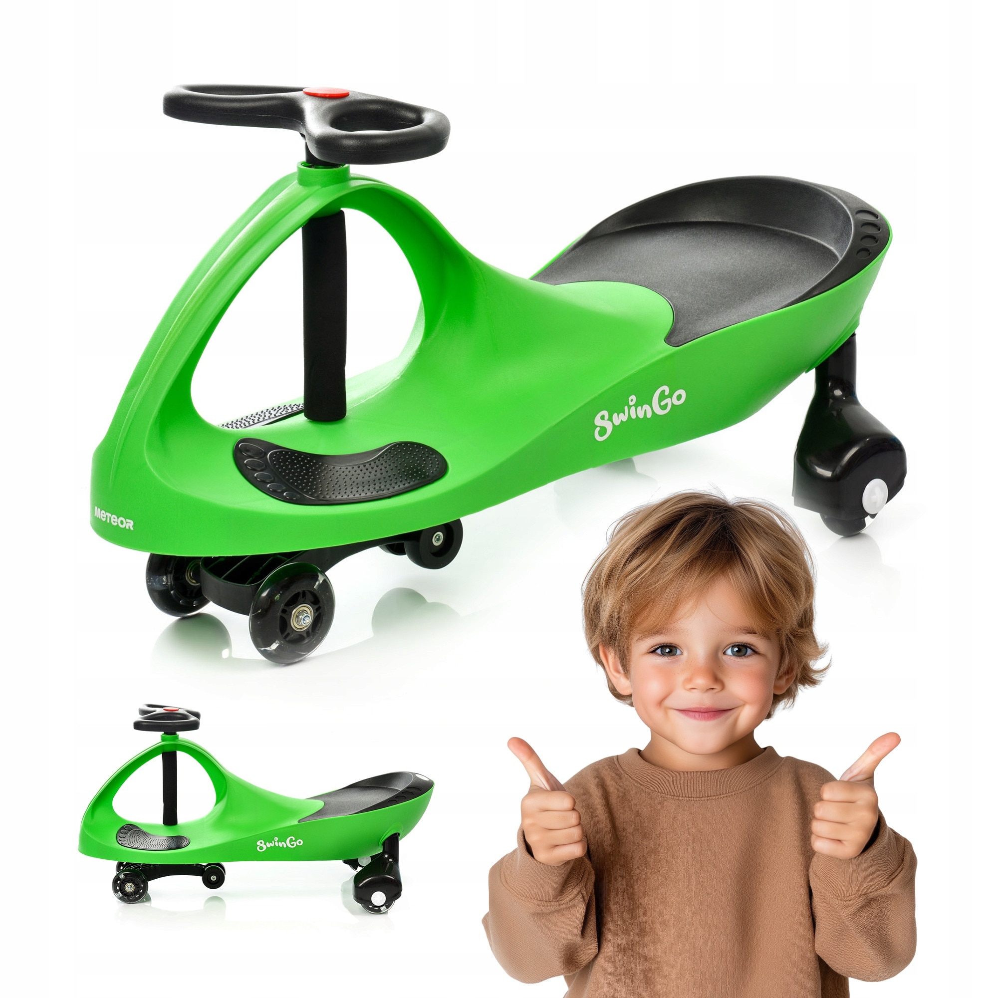 Masinuta Gravitationala, Meteor, Swingo, Material, Pp, Pu, Maner, Tpr, Greutate Maxima Utilizator, 50 Kg, Varsta Utilizator, 12 Luni+, Dimensiuni, 80 cm x 29 cm x 45 cm, Verde-Negru
