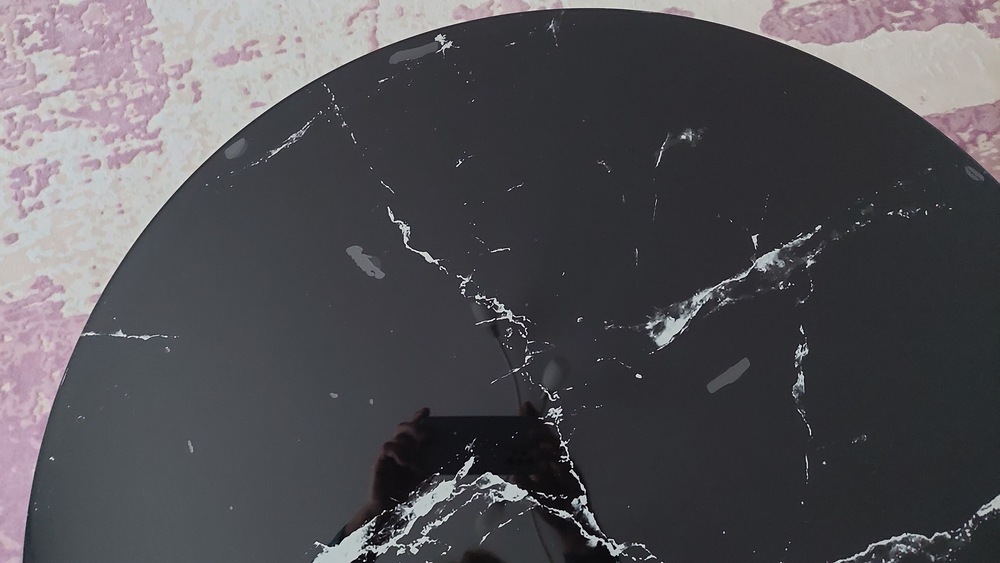 Mai mult ca sigur ca e din cauza foliei autocolante trasa peste lemn, ca doar n-are cum sa fie marmura imitatia aia... Cu 30 de lei se poate pune alta si iese ca noua...