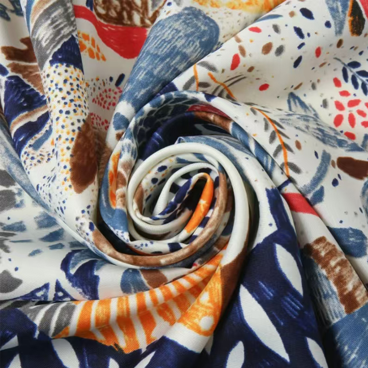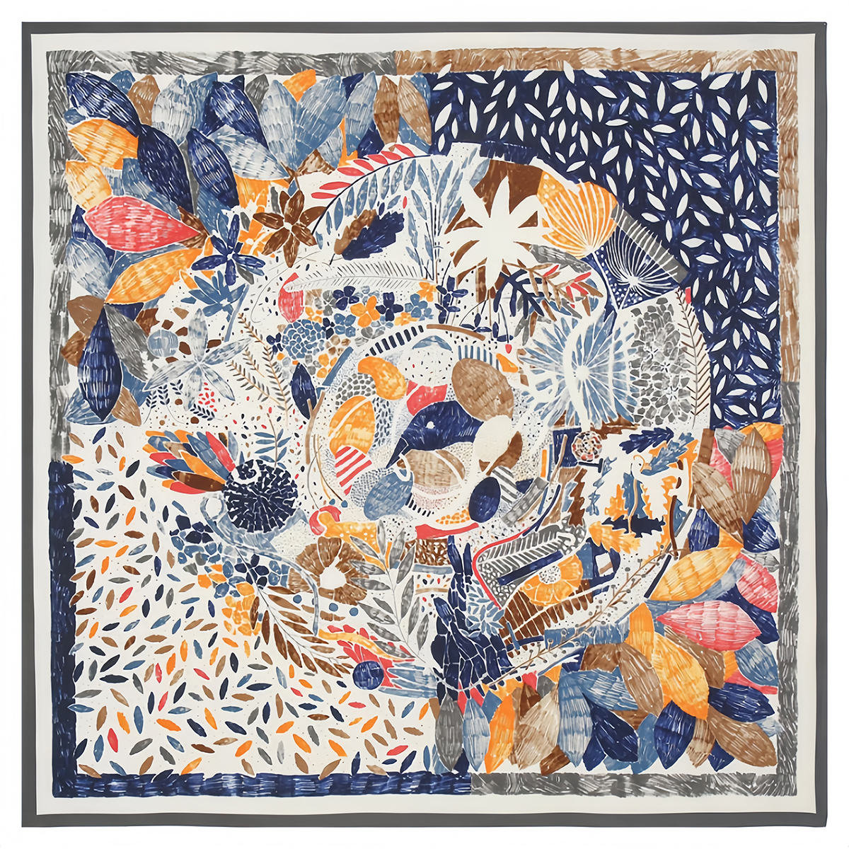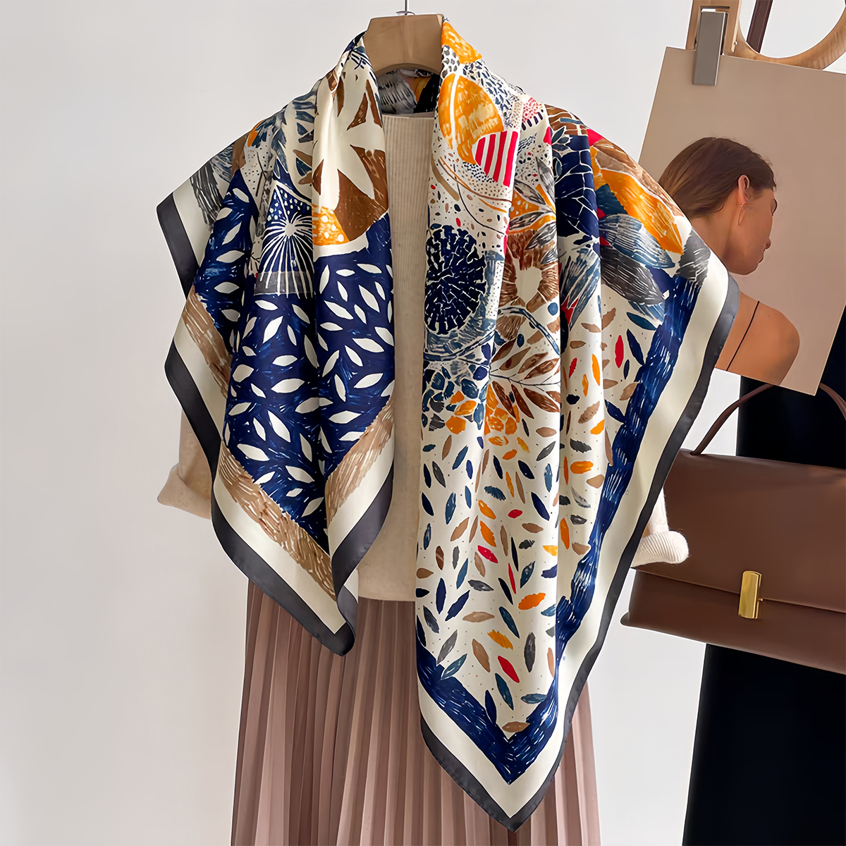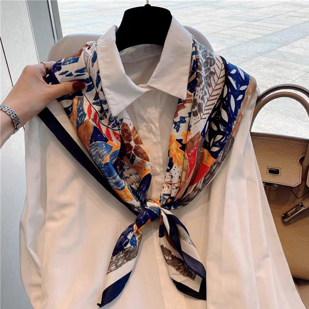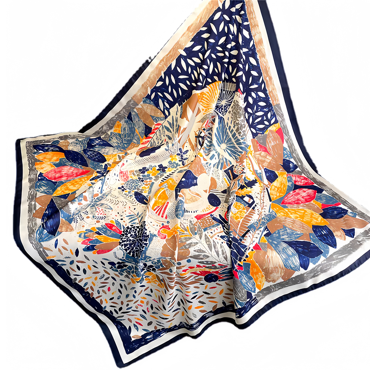 Esarfa lunga tip sal pentru femei, JENUOS®, Matase simulata, Retro, Seria pictura in ulei, 90X90cm, Albastru
