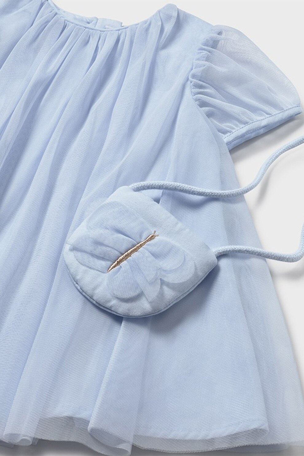 Mayoral, Rochie din tul si geanta, Albastru pastel/Albastru prafuit