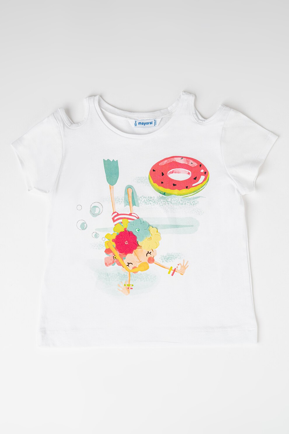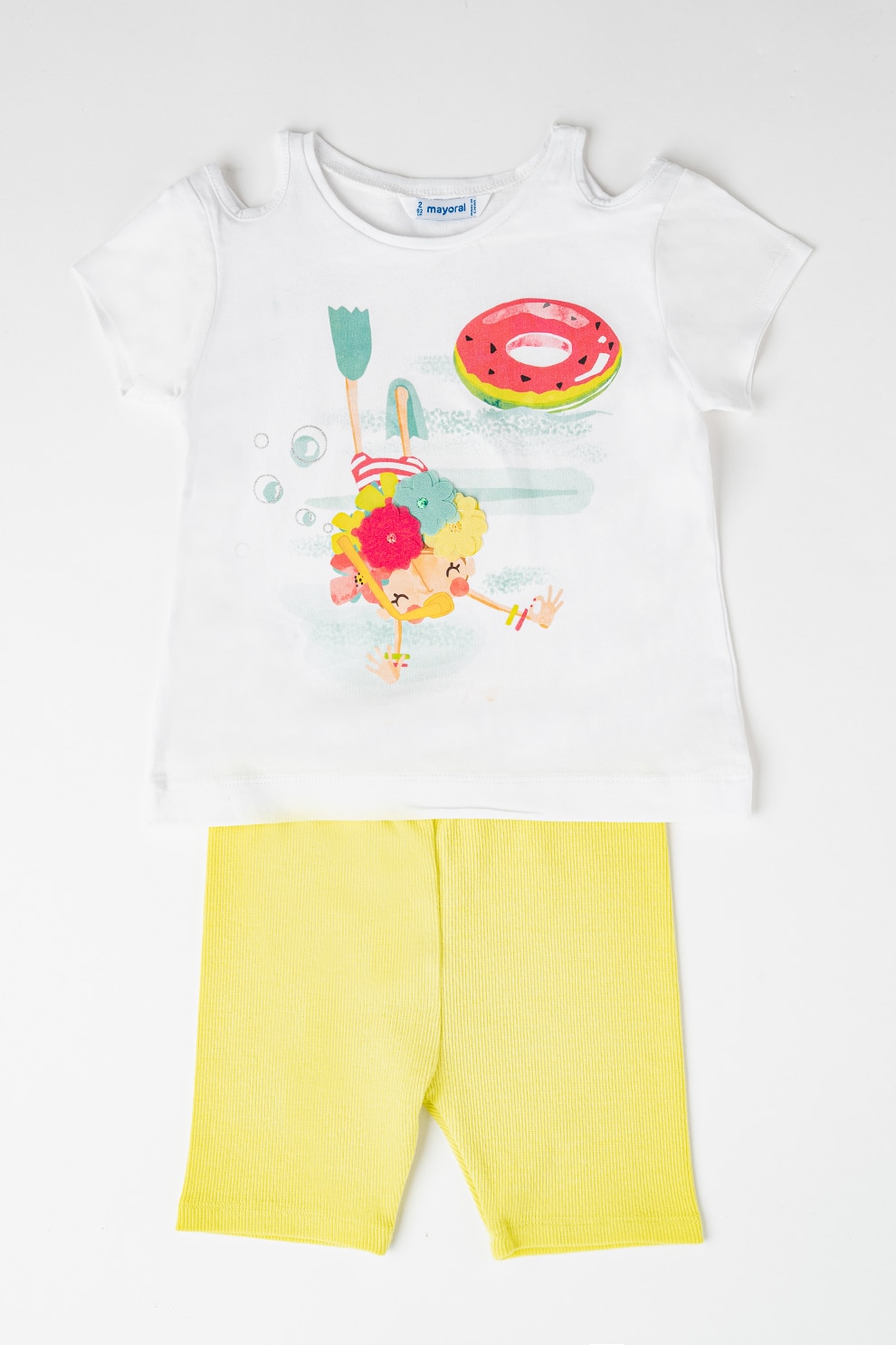 Mayoral, Set de tricou cu imprimeu si colanti - 2 piese, Alb/Verde lime