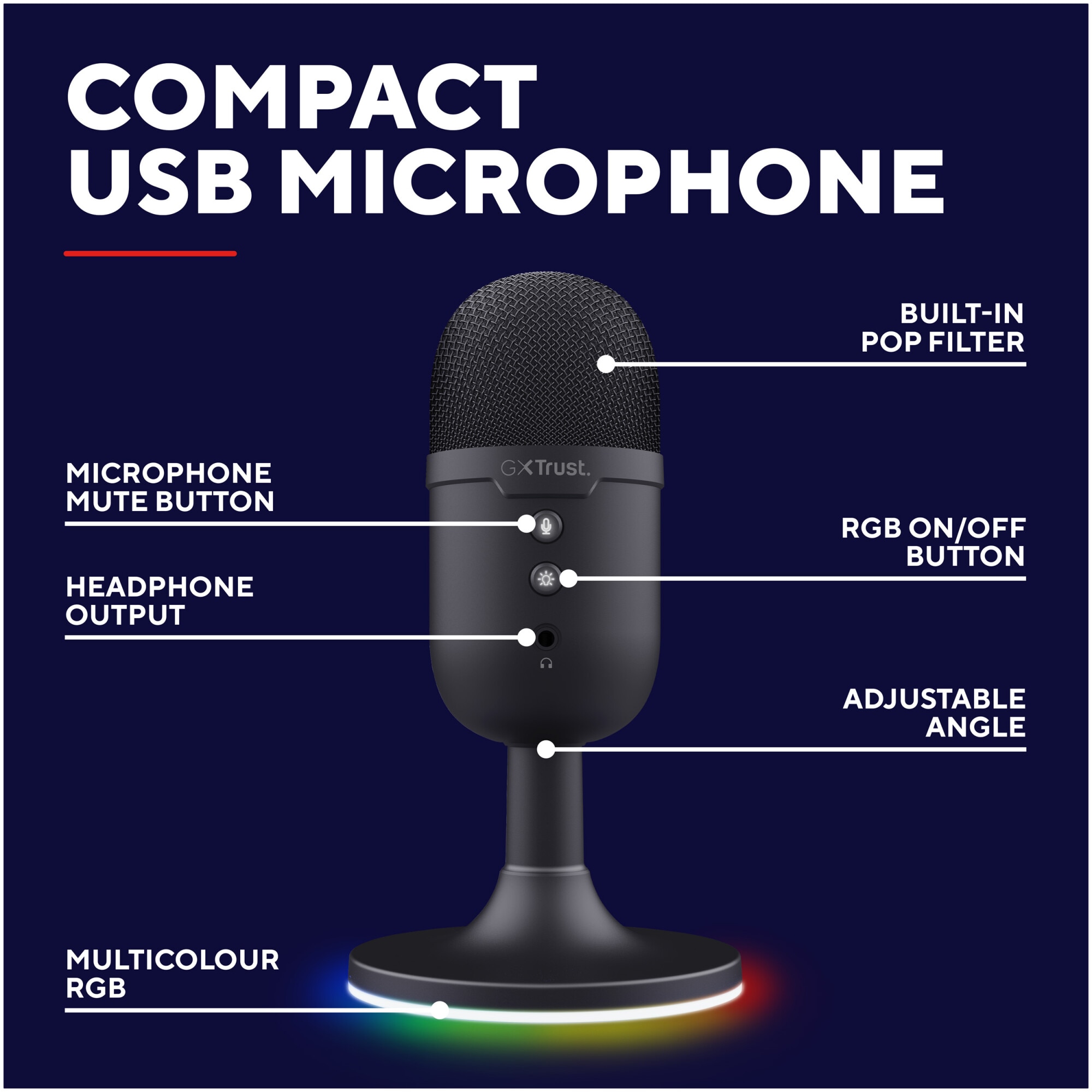 Microfon Gaming Trust GXT234P YUNIX, USB, Iluminare RGB, Cardioid, microphone mute, lights on/off, Negru