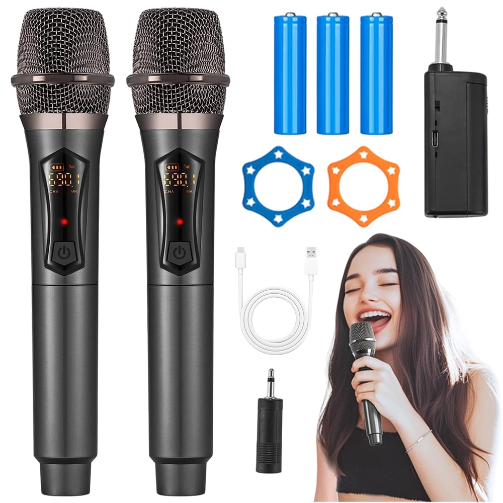 Microfon Wireless 2.4G, Sistem De Microfon duale Dinamic Metalic Cu Receptor Reincarcabil, Pentru Petrecere Karaoke, Amplificator De Voce, Sistem Pa, Aparat De Cantat, Biserica, Nunta, Intalnire