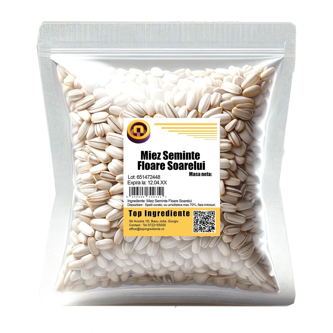 Miezul de floarea soarelui sau semintele crude decojite reprezinta inima fructului, o sursa bogata de substante nutritive esentiale pentru sanatatea noastra. Aceste seminte sunt obtinute prin indepartarea cojii exterioare, lasand in urma miezul, care este comestibil si plin de beneficii pentru organism.