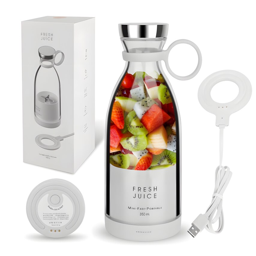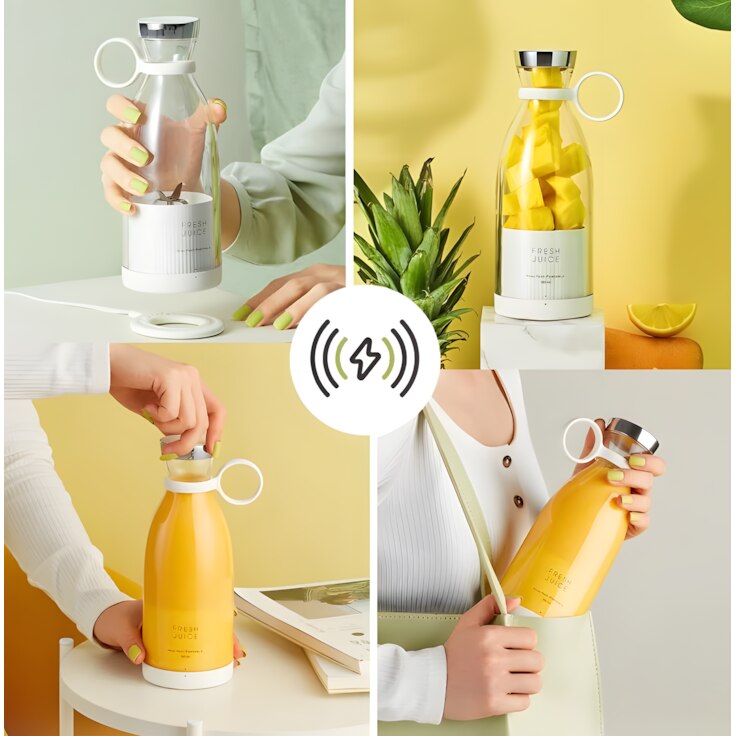 Mini Blender Portabil STARGRIG®, Incarcare Wireless, Multifunctional, Auto-curatare, Baterie 1400mAh, 15 utilizari, Putere 20000 RPM, Capacitate 350 ml, Alb