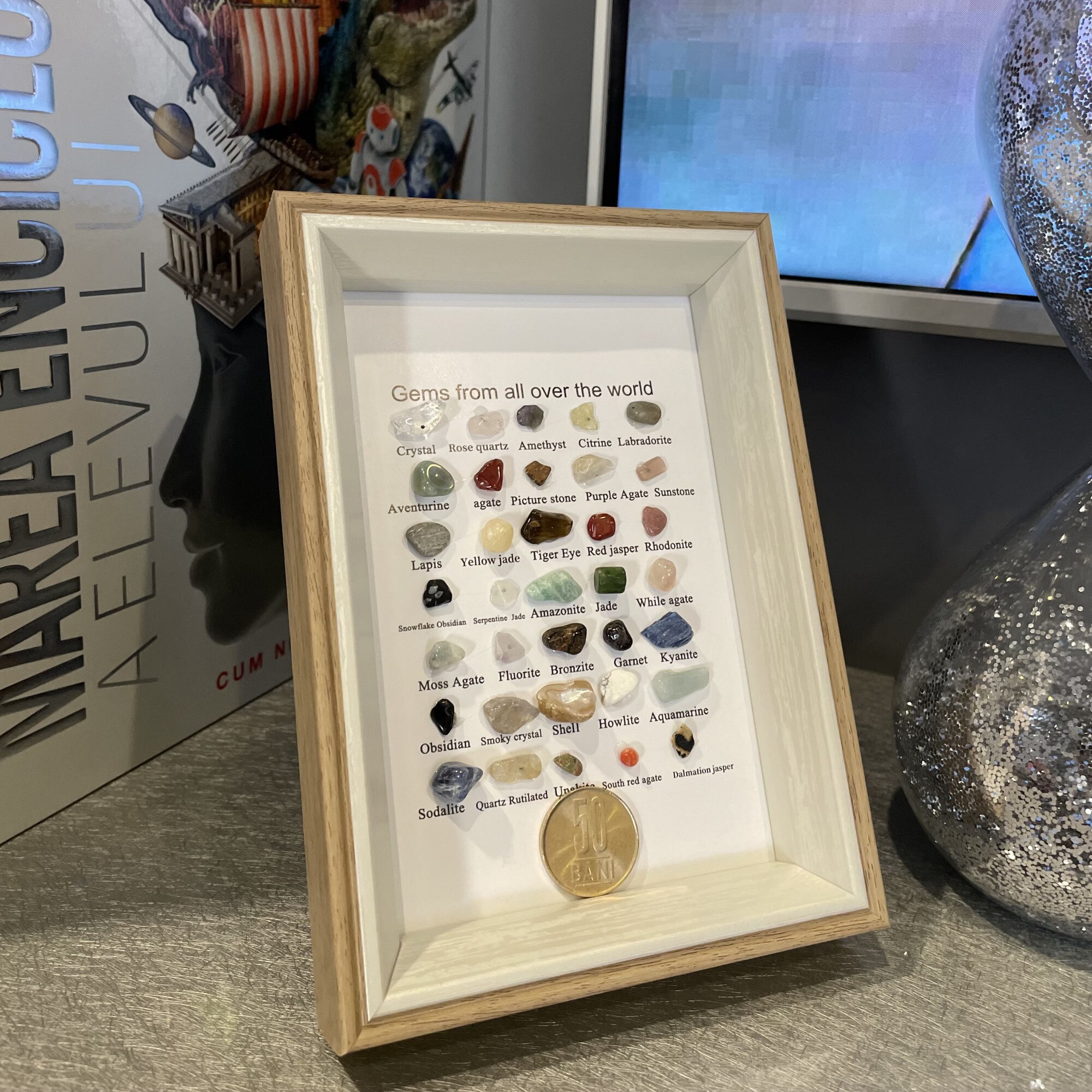 Mini tablou cu 35 de cristale si pietre semipretioase de colectie din intreaga lume pentru copii si adulti