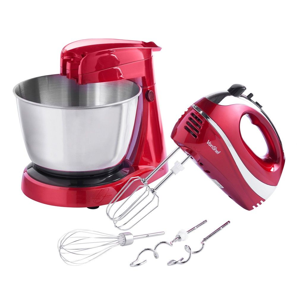Mixer 2-in-1 cu Bol si de Mana VonShef 2013230, Putere 300W, Capacitate bol 3.5L, 5 Setari de viteza, Turbo, Rosu