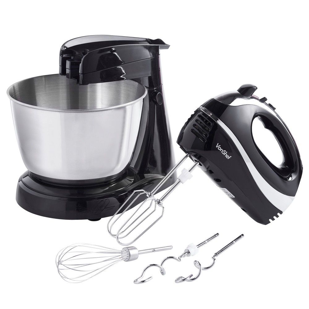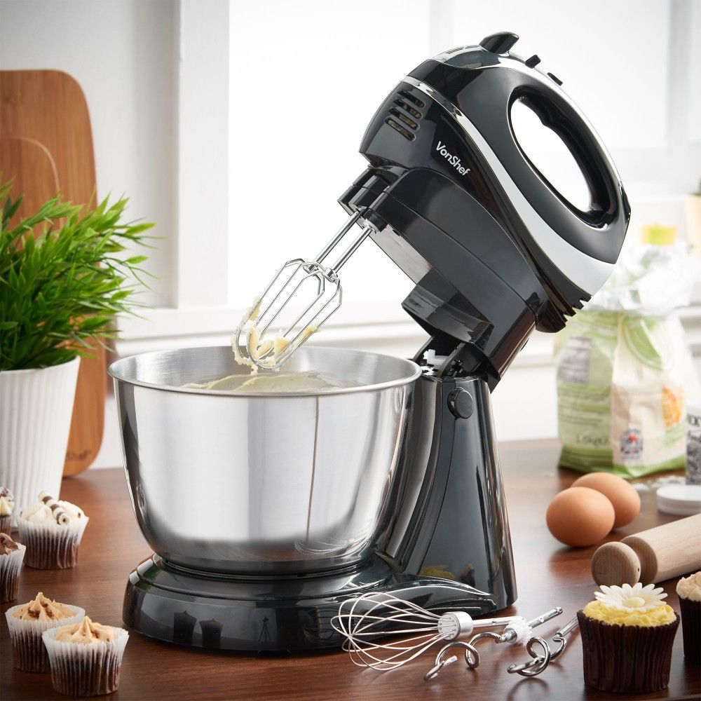 Mixer 2-in-1 cu picior si de mana VonShef 2013229, putere 300W, capacitate bol 3.5L, 5 setari de viteza si turbo, negru