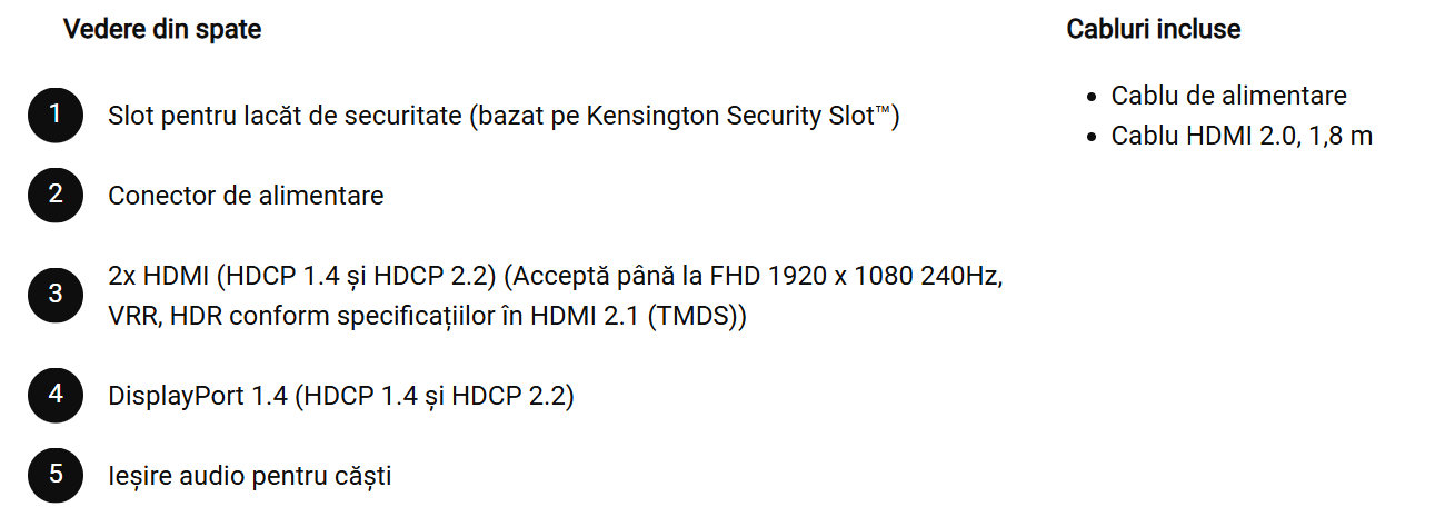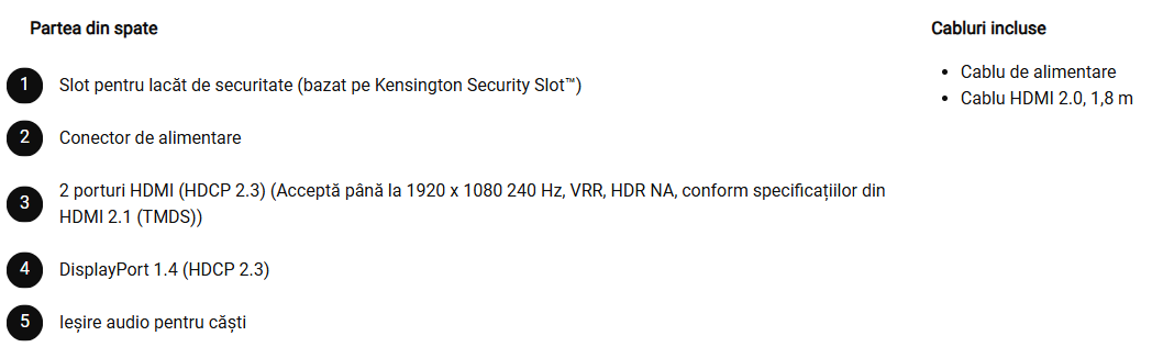 | Continut pachet | 1 x Manual de utilizare 1 x Monitor 1 x Stand 1 x Card QR |