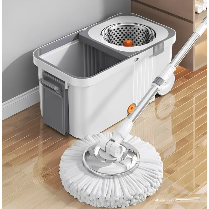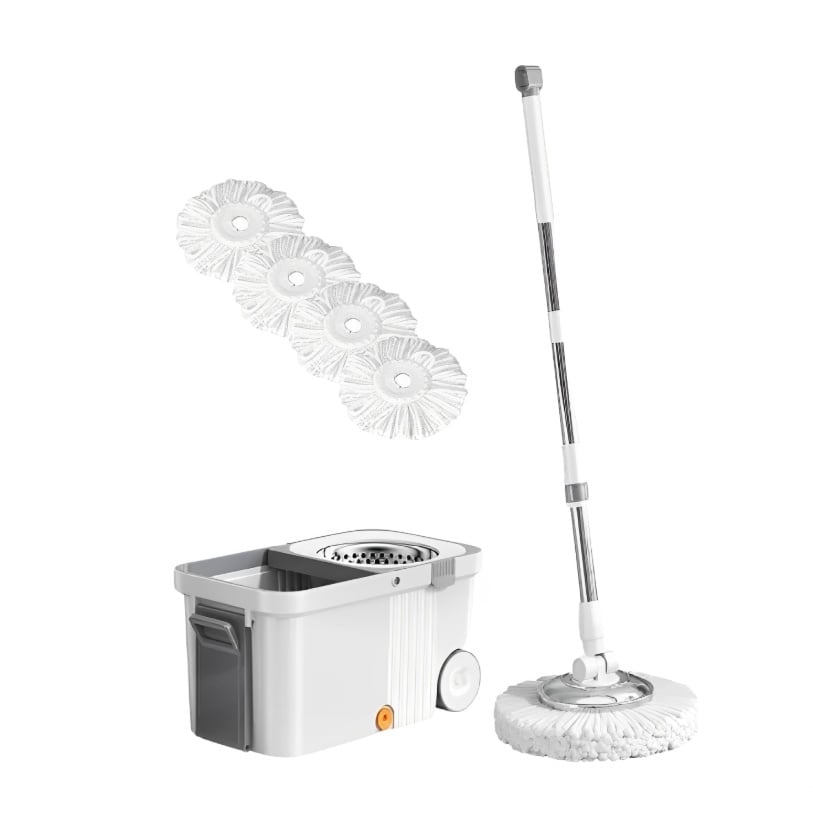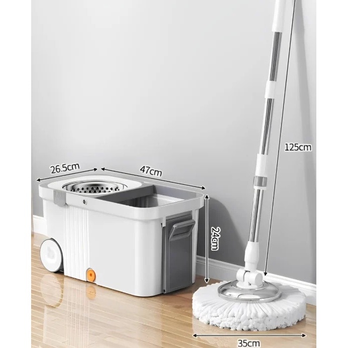 Cu acest set, vei obtine o curatenie stralucitoare fara sa depui mult efort. Galeata cu roti si storcatorul centrifuga iti permit sa storci mopul fara sa te apleci, iar lavetele din microfibra capteaza eficient praful si murdaria, lasand podelele impecabile si igienizate. Fie ca faci curatenie zilnica sau mai detaliata, setul de mop rotativ este partenerul perfect pentru a-ti mentine casa curata si stralucitoare.