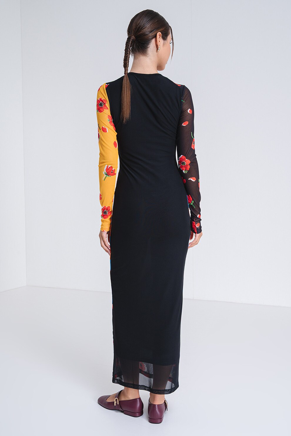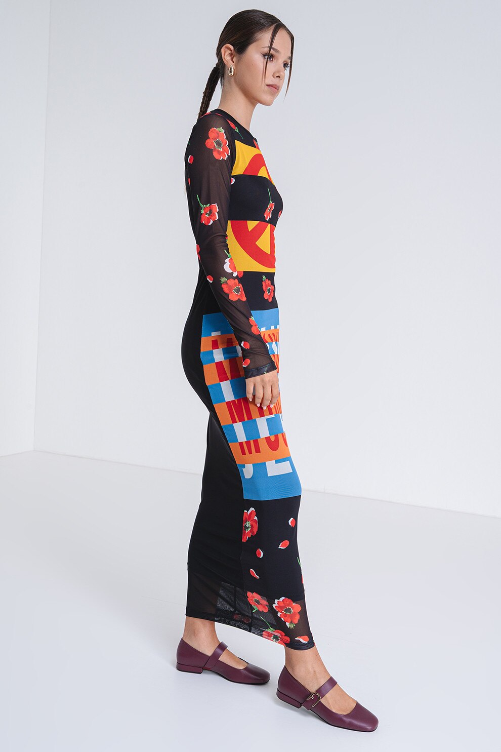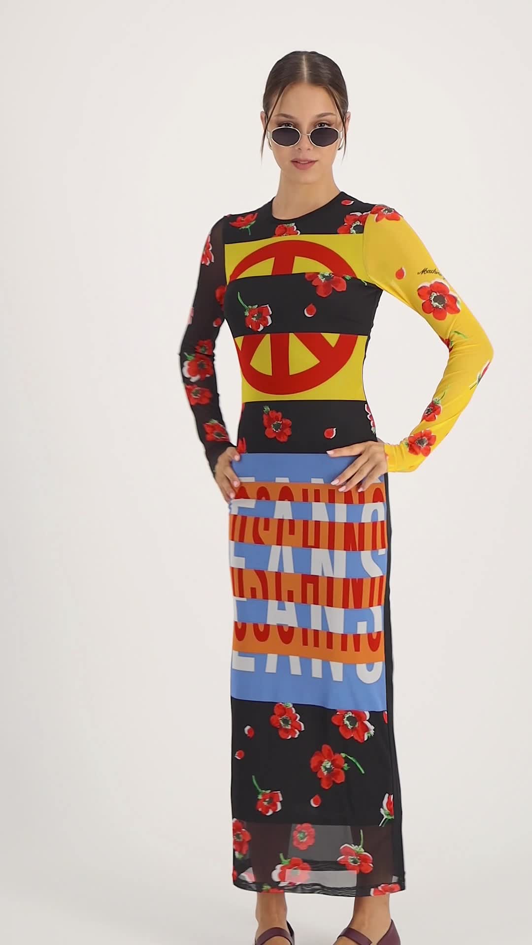 Moschino Jeans, Rochie maxi cu model, Negru/Galben/Albastru