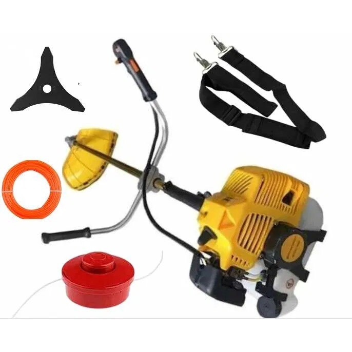 Motocoasa de tuns gazon/iarba pe benzina, 8.5 MAX CP, 52 CC, motor 2 timpi, diametru taiere 25.4 cm, contine: ham simplu + mosor + disc taiere 3T