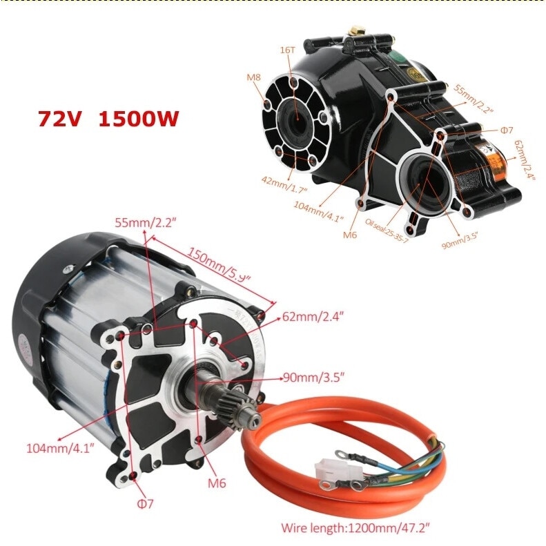 Motor electric fara perii 1500W, 72V, 3400rpm, set axuri diferential spate 760mm, 860mm, 1020mm
