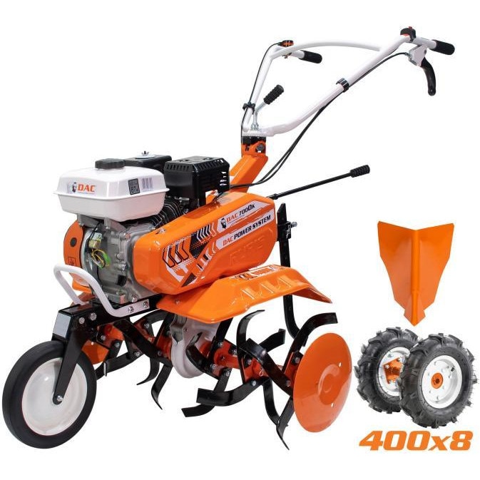 Motosapa pe benzina Ruris DAC 7000K, putere 7 CP, 208 CC, 4 timpi, 2+1 viteze, 56-83 cm latime lucru, 29 cm adancime lucru, contine: freze+roti cauciuc+rarita