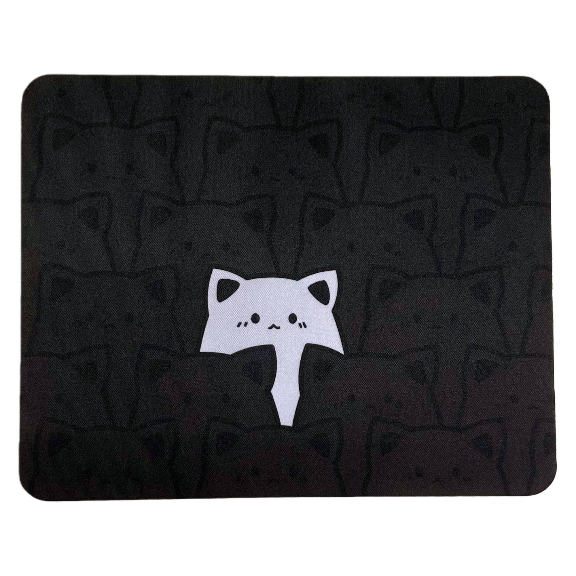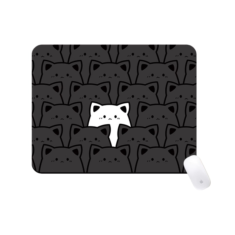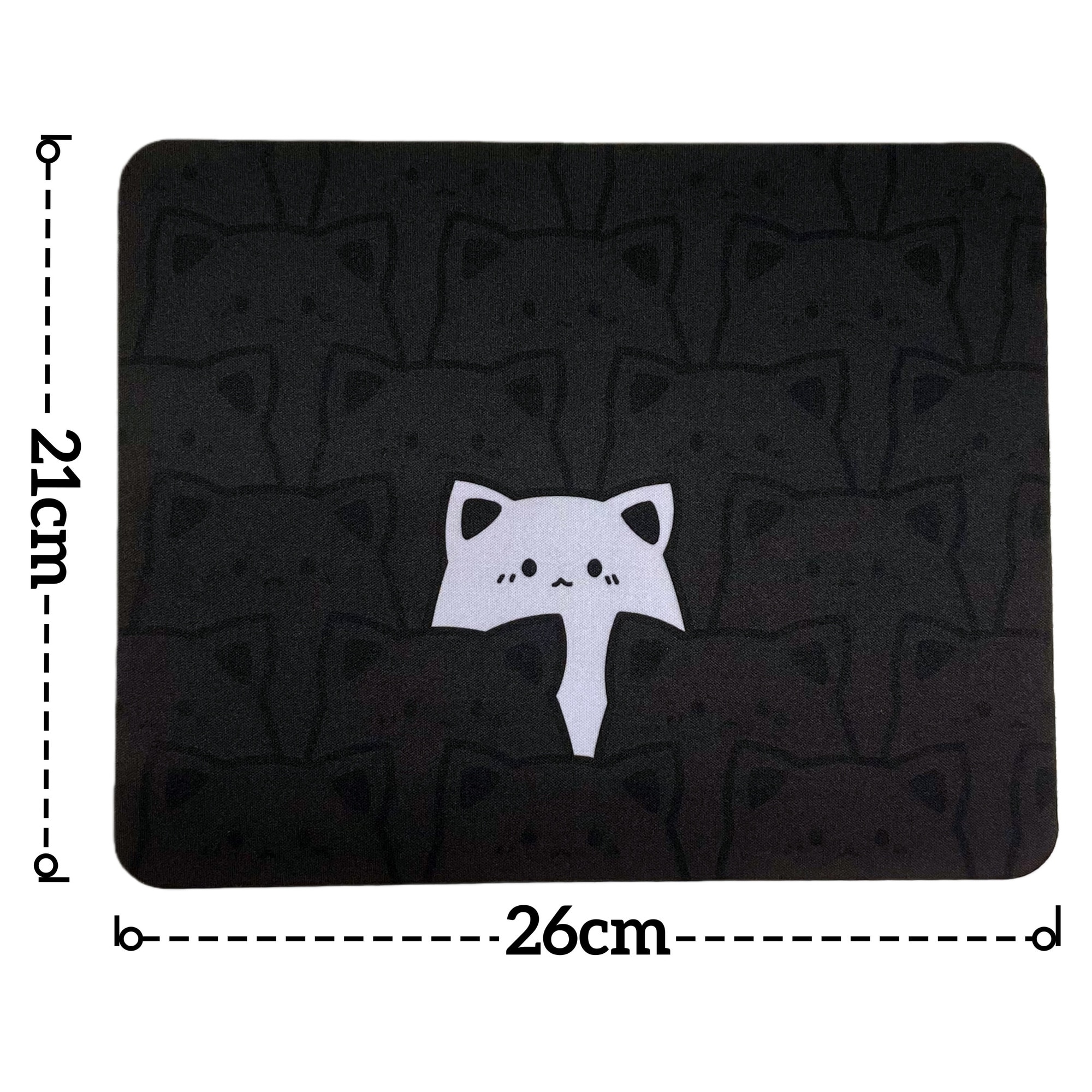 Mouse pad antiderapant cu pisica desen animat, negru, 26x21 cm, pentru laptop si PC, birou si gaming casual