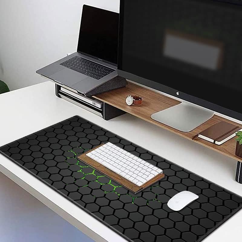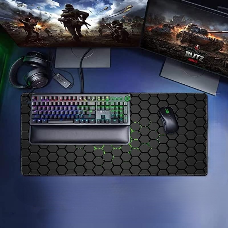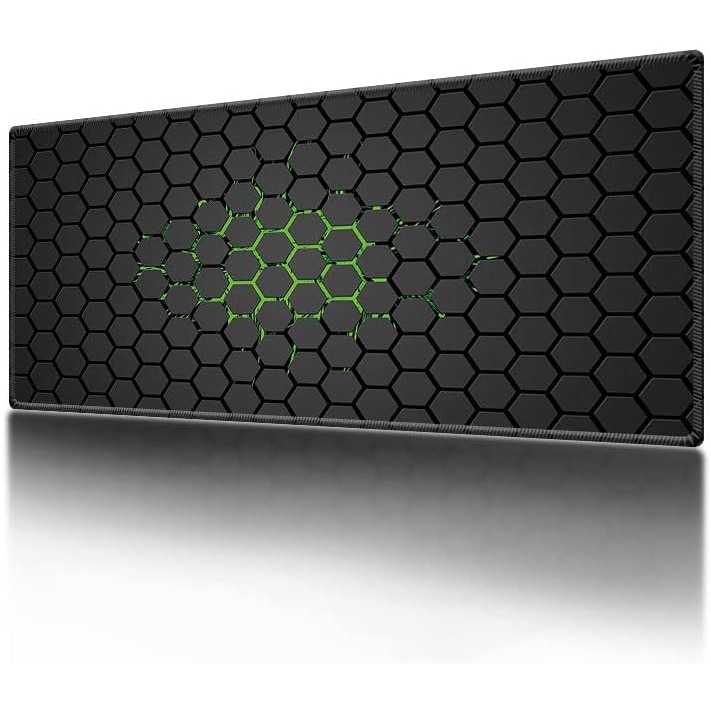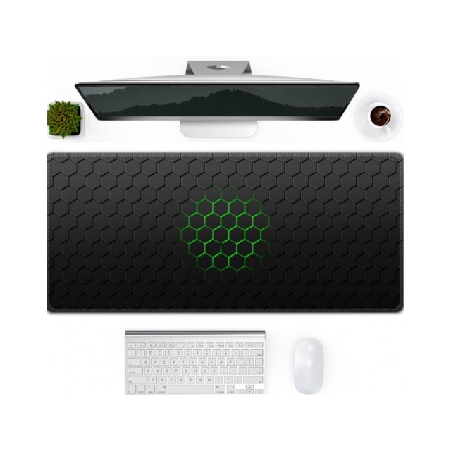 Mouse pad, Zola, cauciucat pentru gaming, anti-derapant, model fagure, 90 x 40 cm, negru/verde