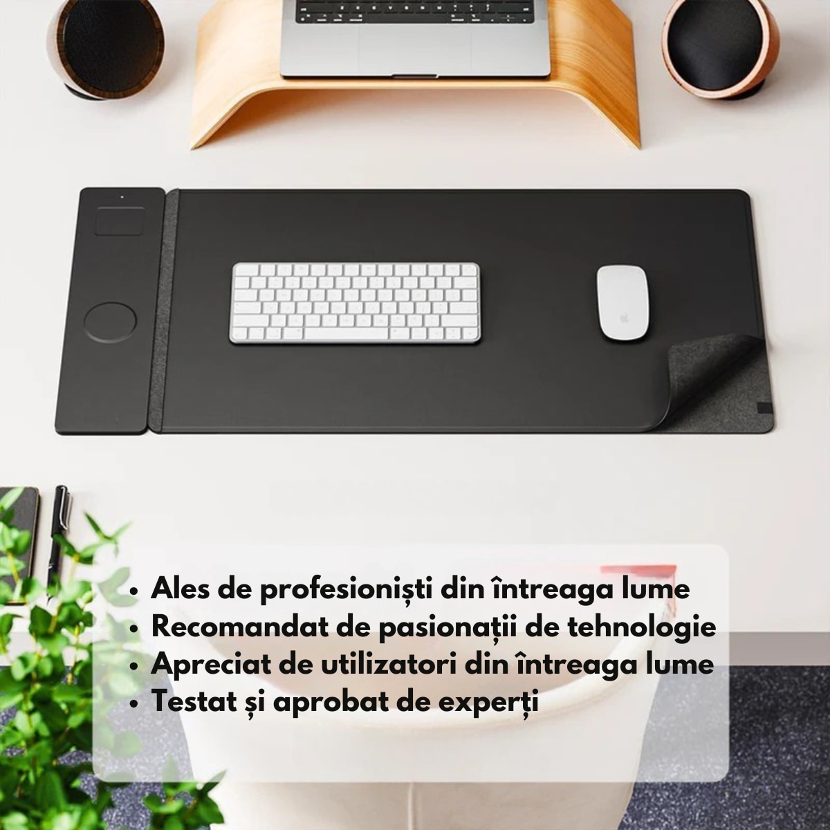 ???? Mousepad de Birou Multifunctional – Organizare, Incarcare Wireless si Design Premium