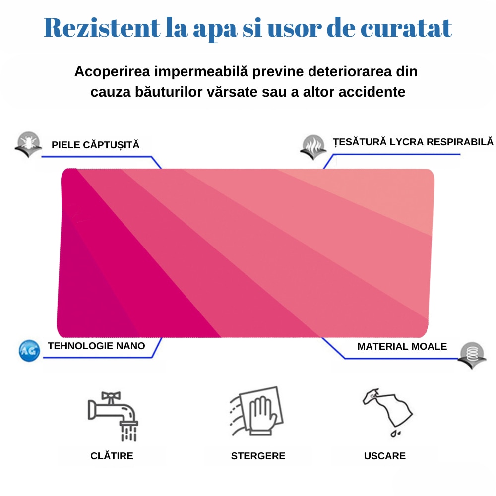 MousePad mare, VisionHub®, Margini cusute, Suprafata moale, Baza Anti-Alunecare Cauciucata, Impermeabil pentru protectie birou, 800x300x4mm, Roz