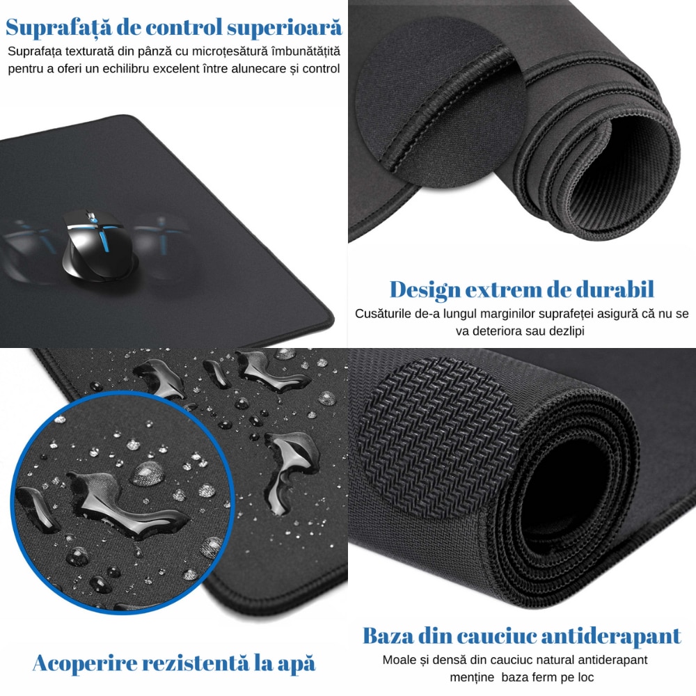 | Altele | Baza cauciucata Compatibil cu toate tipurile de mouse Viteza de alunecare marita Colorat Grosime: 4 mm Textura consistenta a suprafetei pentru o precizie optima Margine cusuta, pentru rezistenta la uzura suprafata rezistenta la apa si usor de curatat Optimizat pentru viteza si control Usor de curatat Design modern Material antialunecare pe baza mouse pad-ului Impermeabil, impiedica raspandirea lichidelor Suprafata moale Baza anti-alunecare, va oferi aderenta necesara si va preveni miscarea alunecarea sau deplasarea mouse-pad-ului |