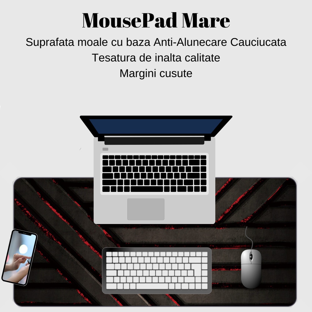 MousePad mare, VisionHub®, Suprafata moale, Baza Anti-Alunecare Cauciucata, Impermeabil pentru protectie birou, 800x300x4mm, Negru